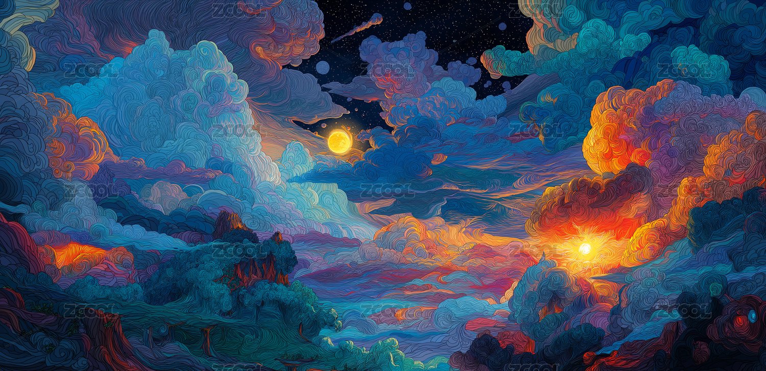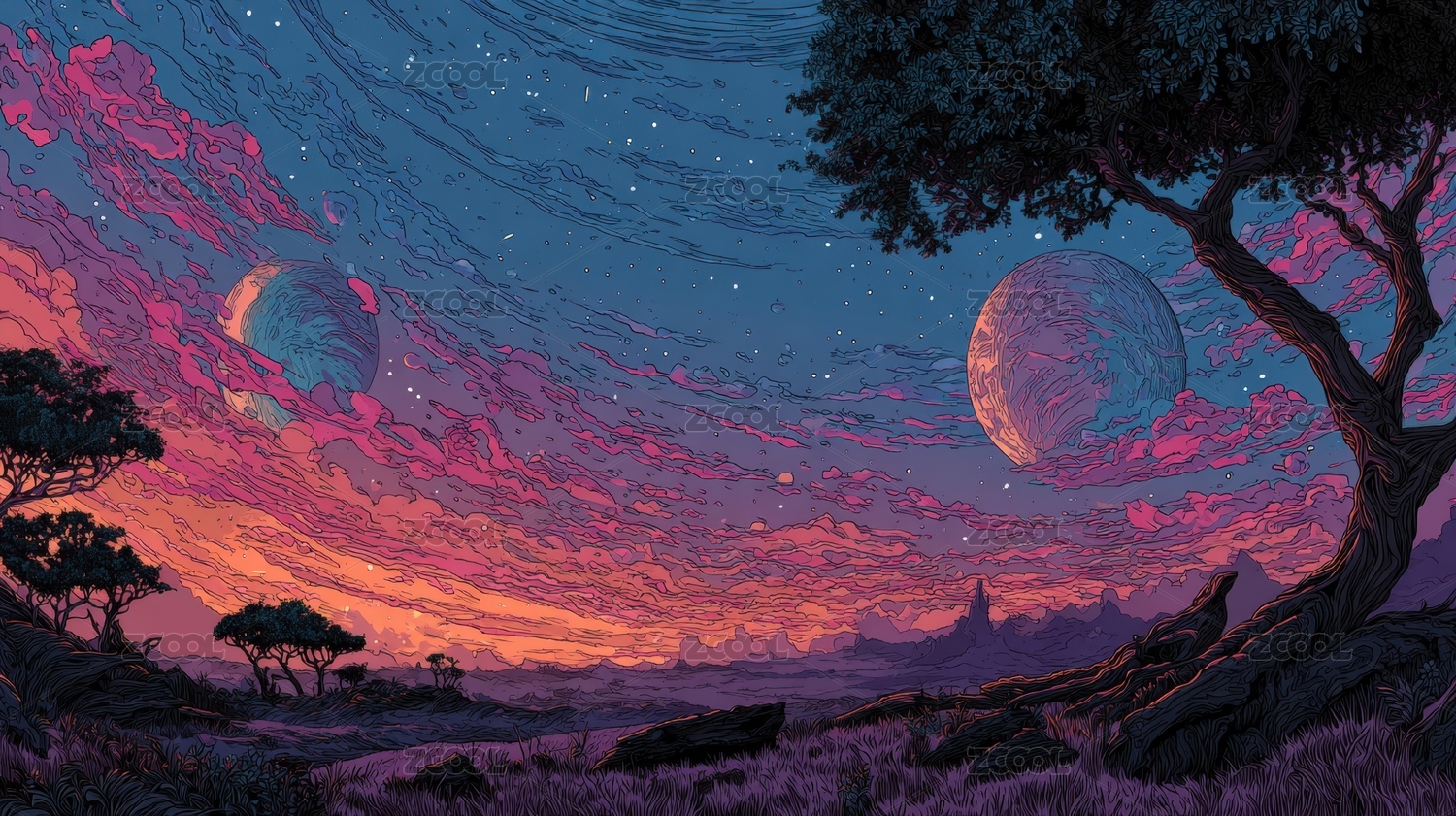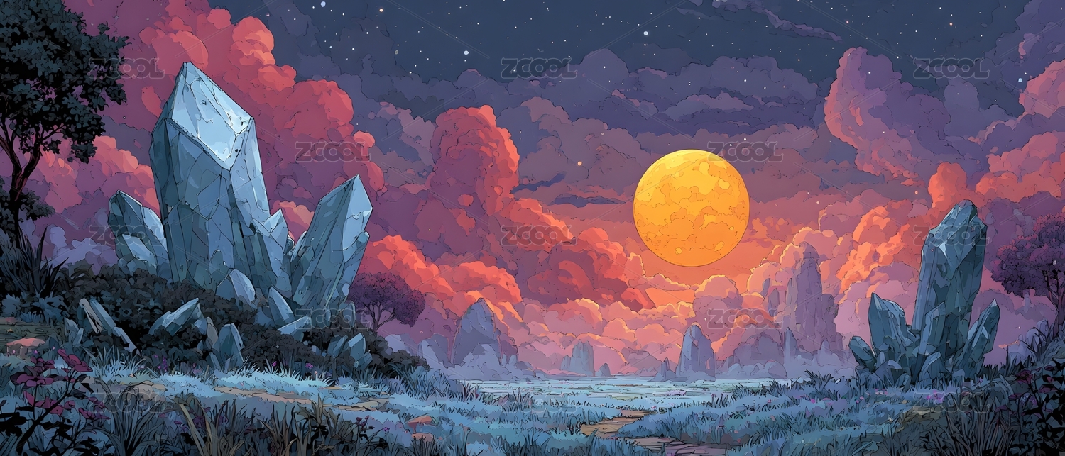 天空,高山,地形,宁静,月亮,日落,自然美,满月