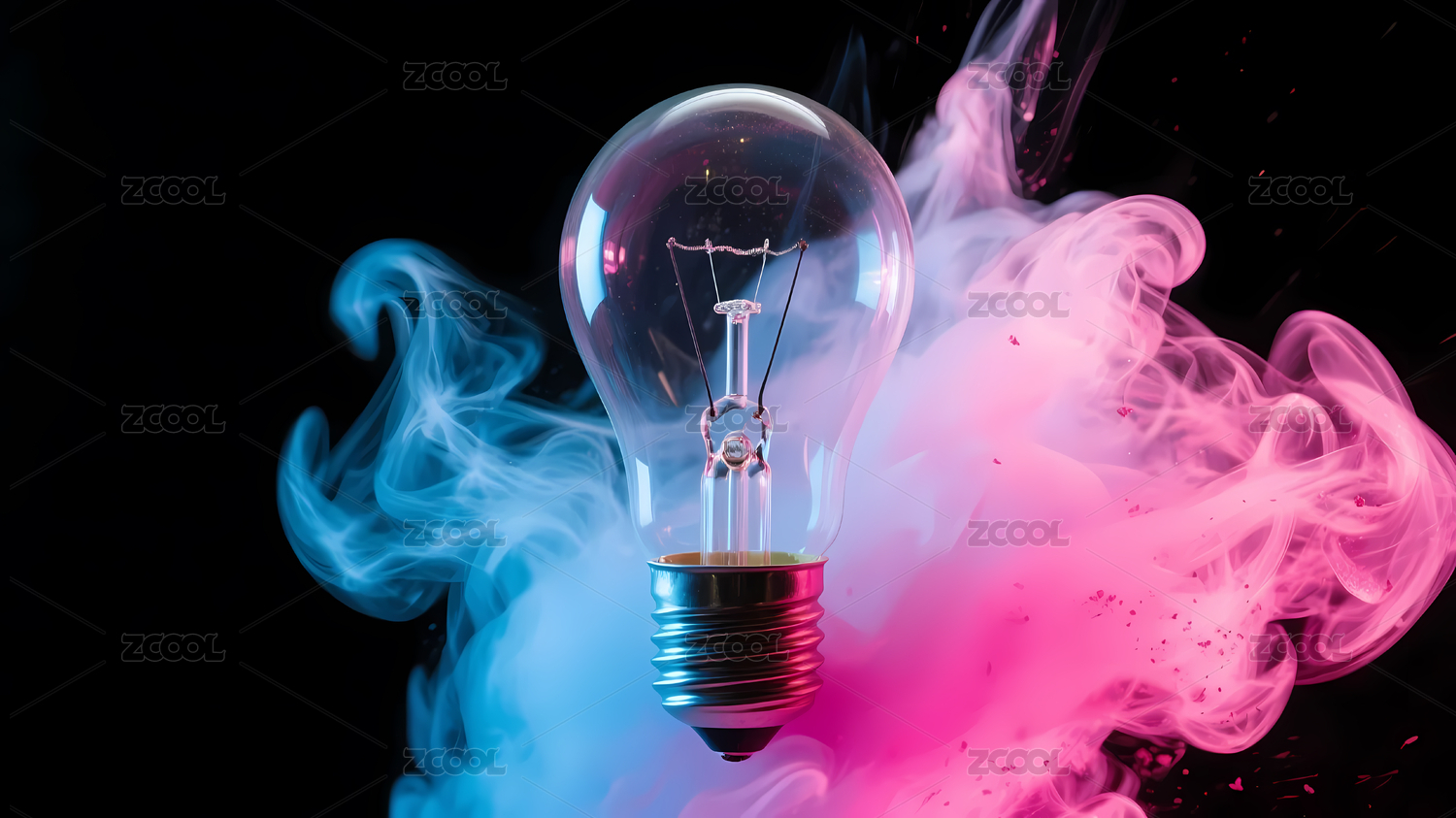 透明灯泡环绕粉蓝烟雾