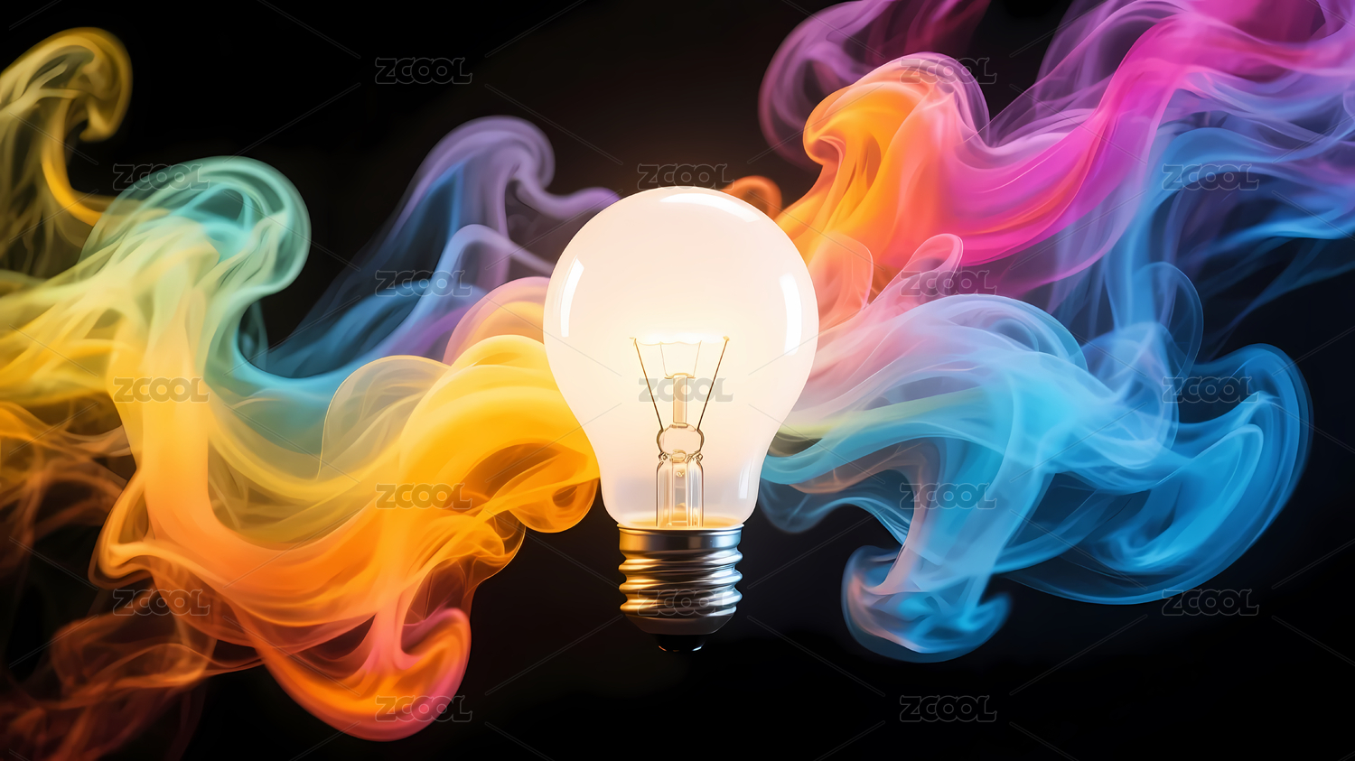 被彩色烟雾笼罩的电灯泡