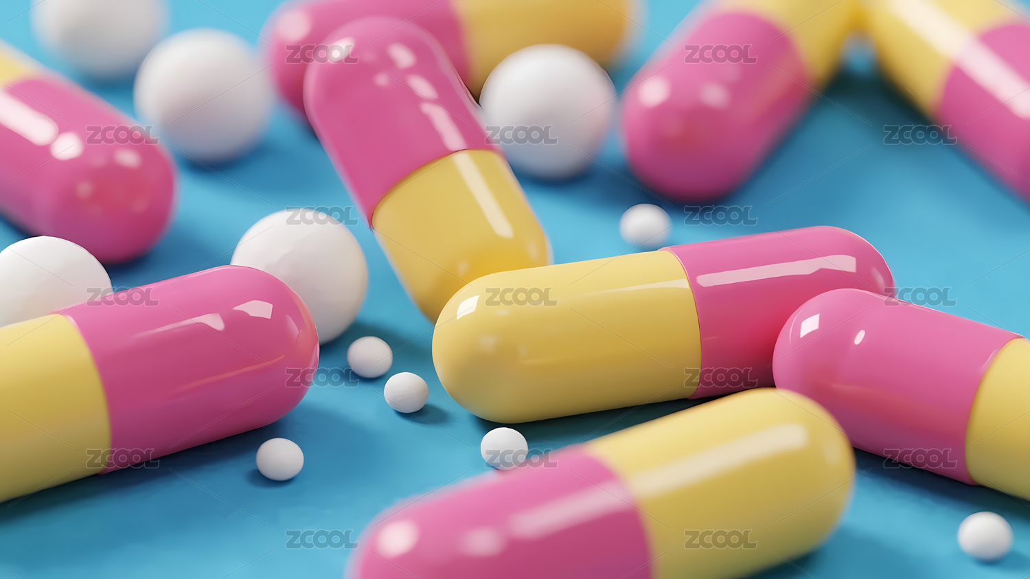 蓝色,红色,背景,立体,光泽,白色,胶囊,水波纹,药片,散落