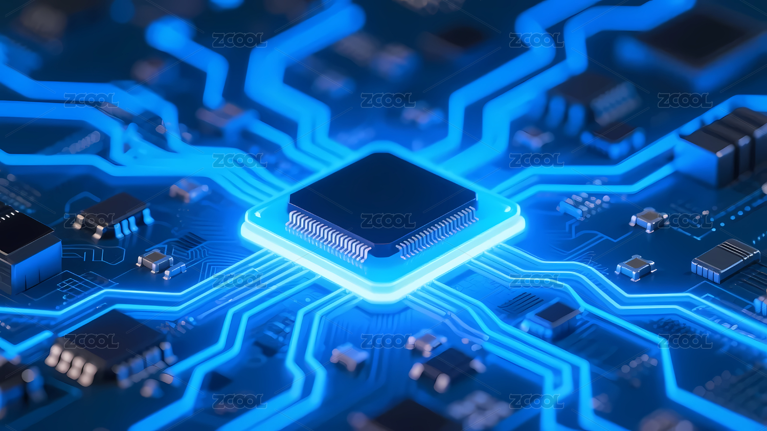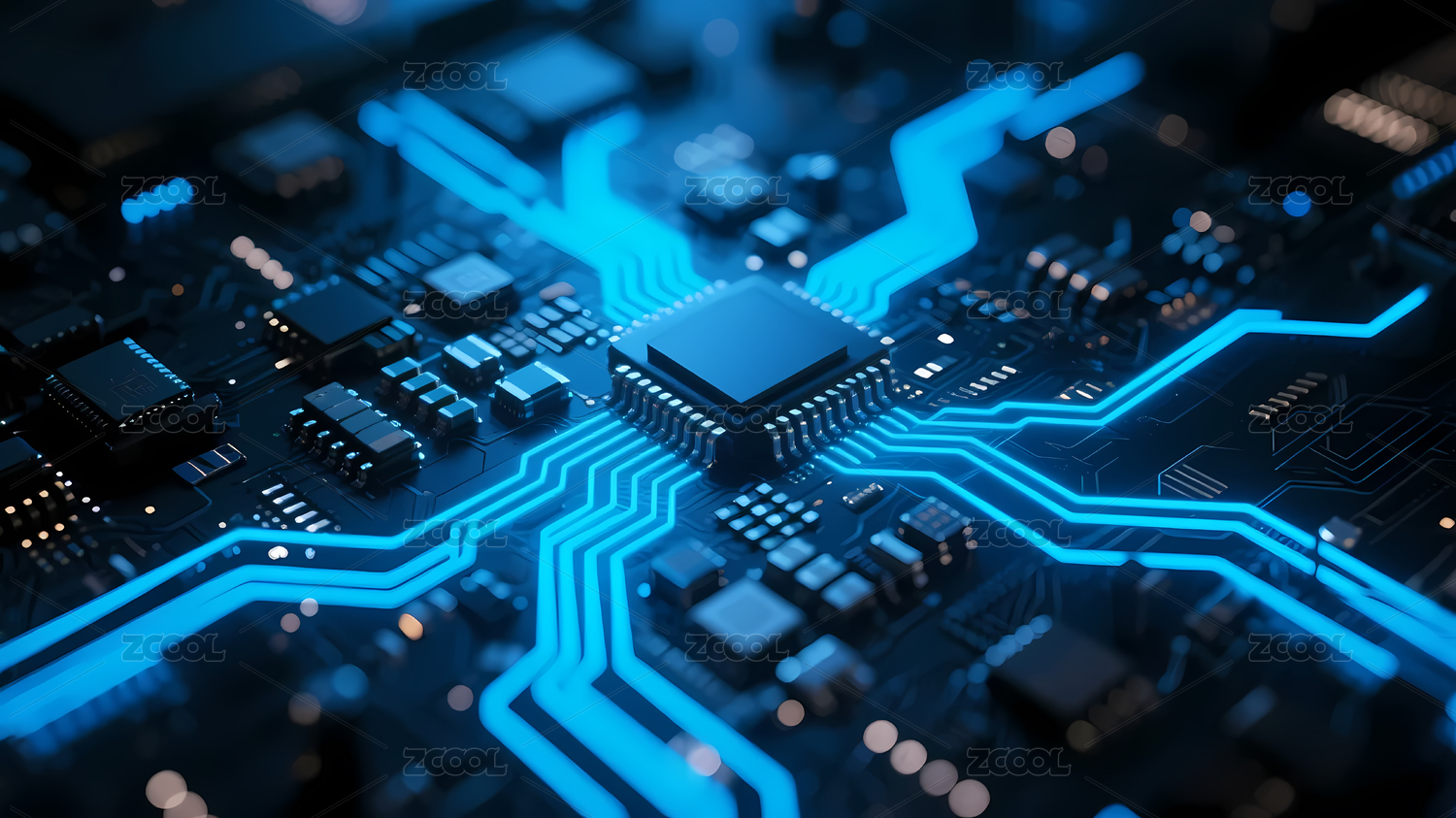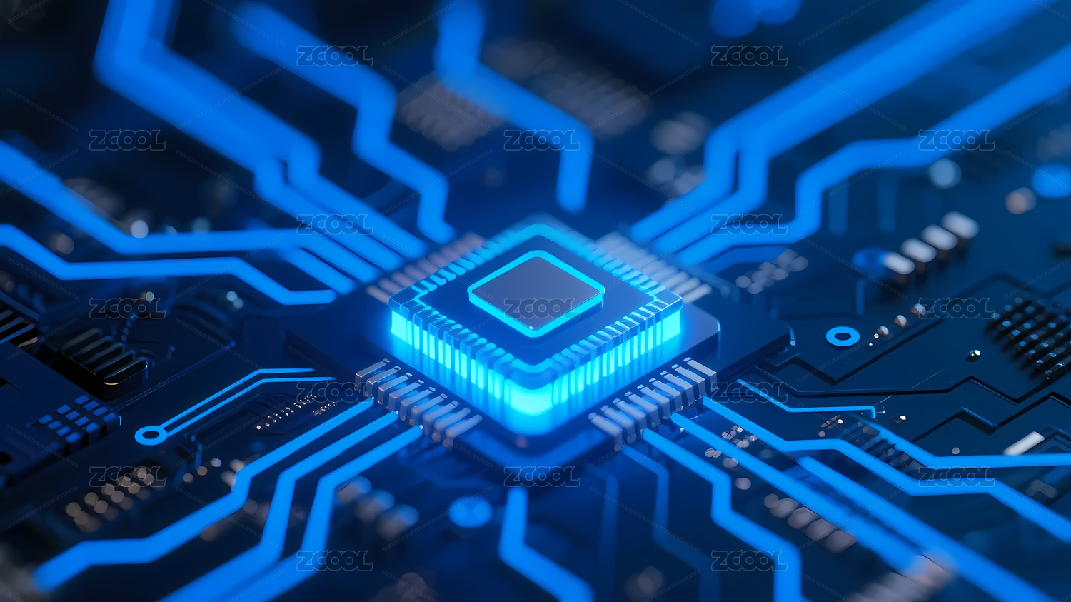 蓝色,背景,芯片,电路板,电子,模糊,科技,发光,线条,点状