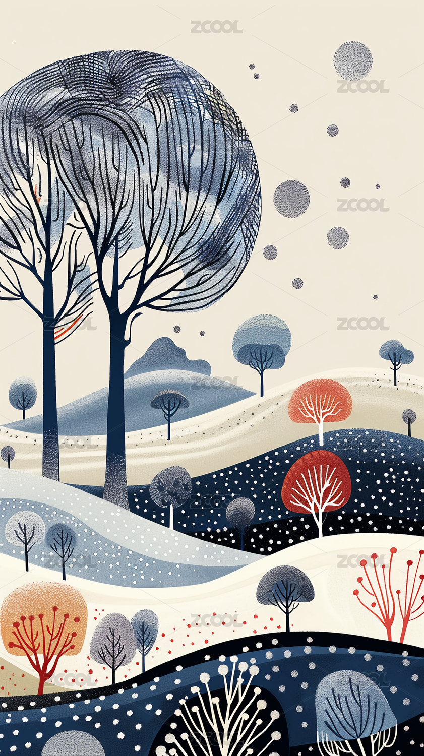 绘画,插画,自然,风景,艺术,乡村,绿色,蓝色,蓝天,树木