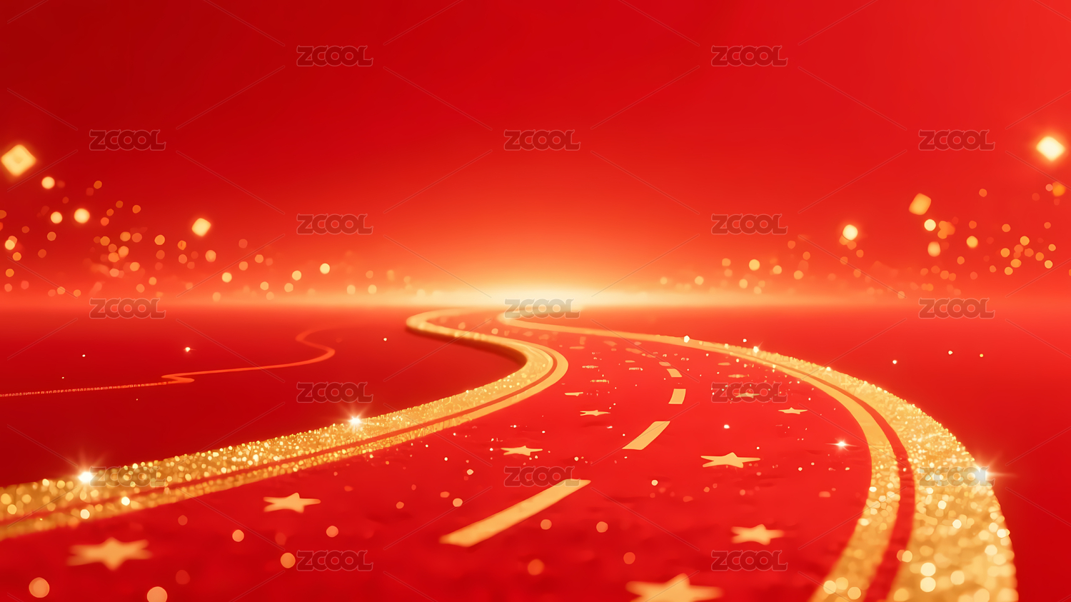 金色,背景,红色,光点,夜晚,道路,蜿蜒,山峦,梦幻,景观
