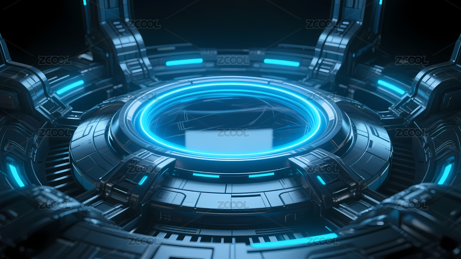蓝色,背景,深色,橙色,圆形,科技,未来,发光,结构,装置