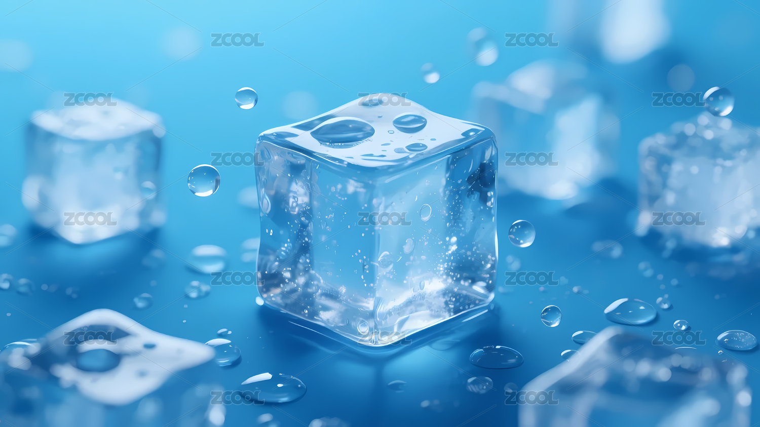 浅蓝背景透明冰块