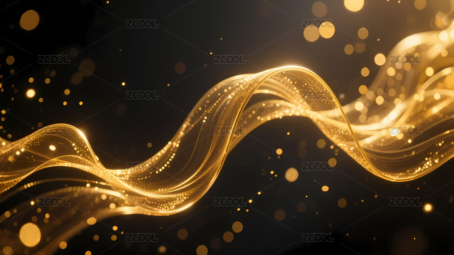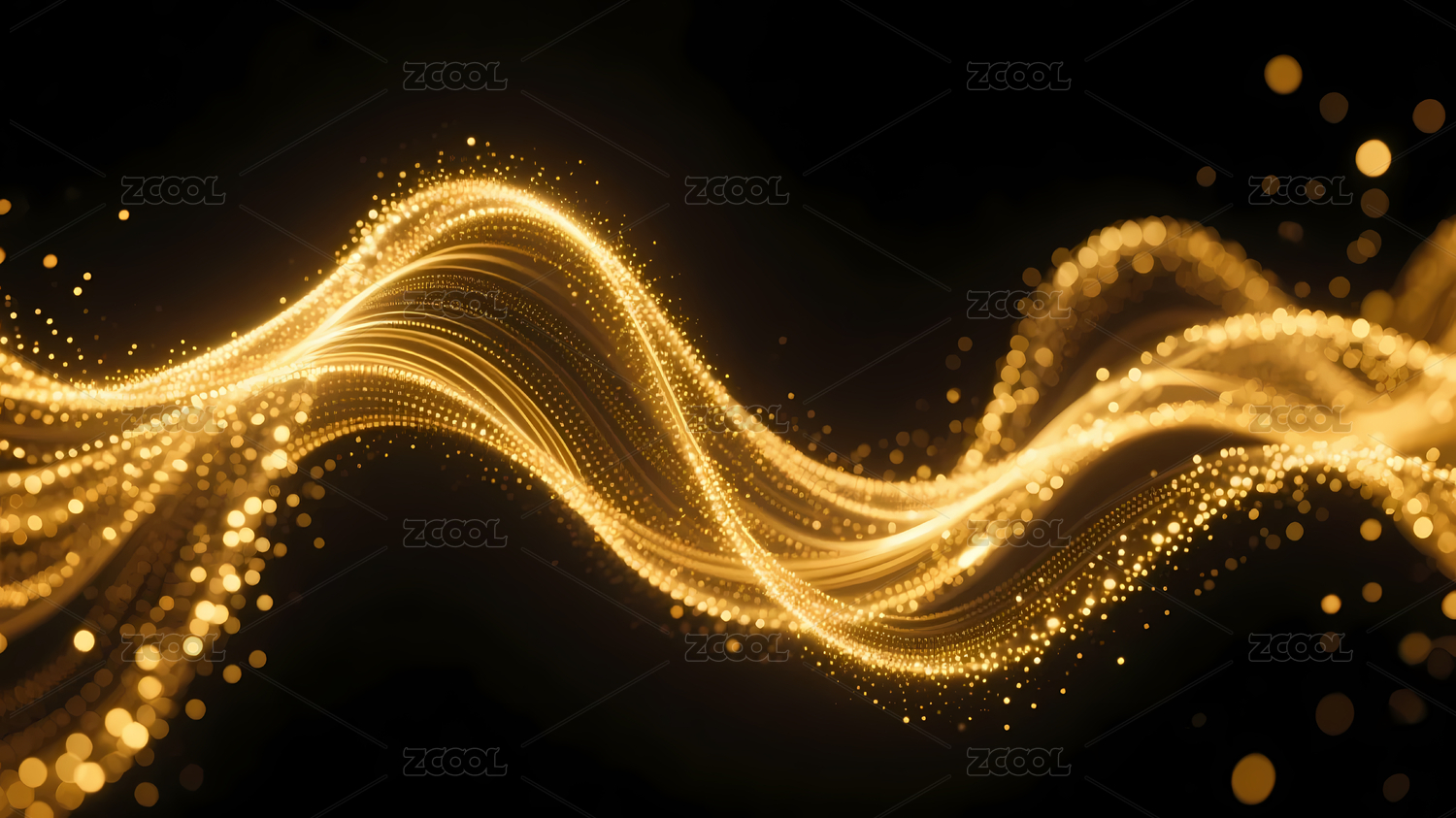 背景,金色,光点,深蓝,粒子,视觉,动感,波浪线,璀璨,光芒