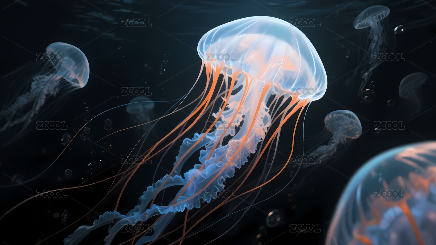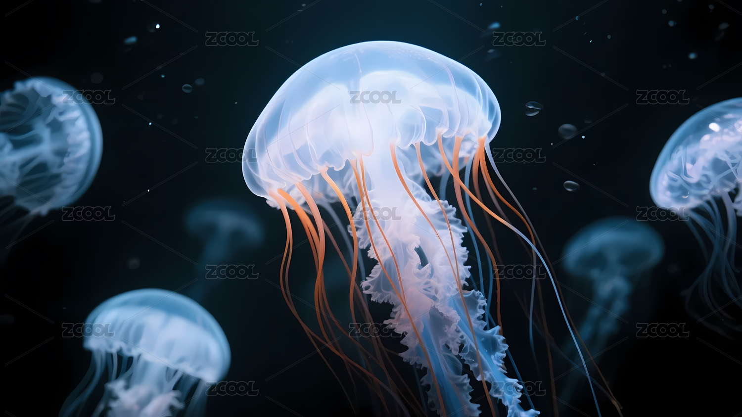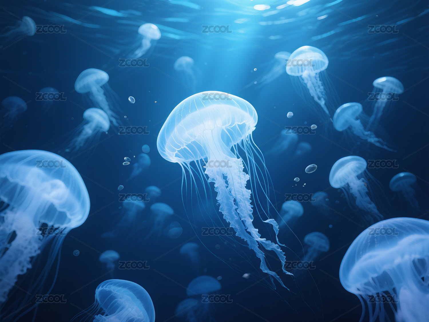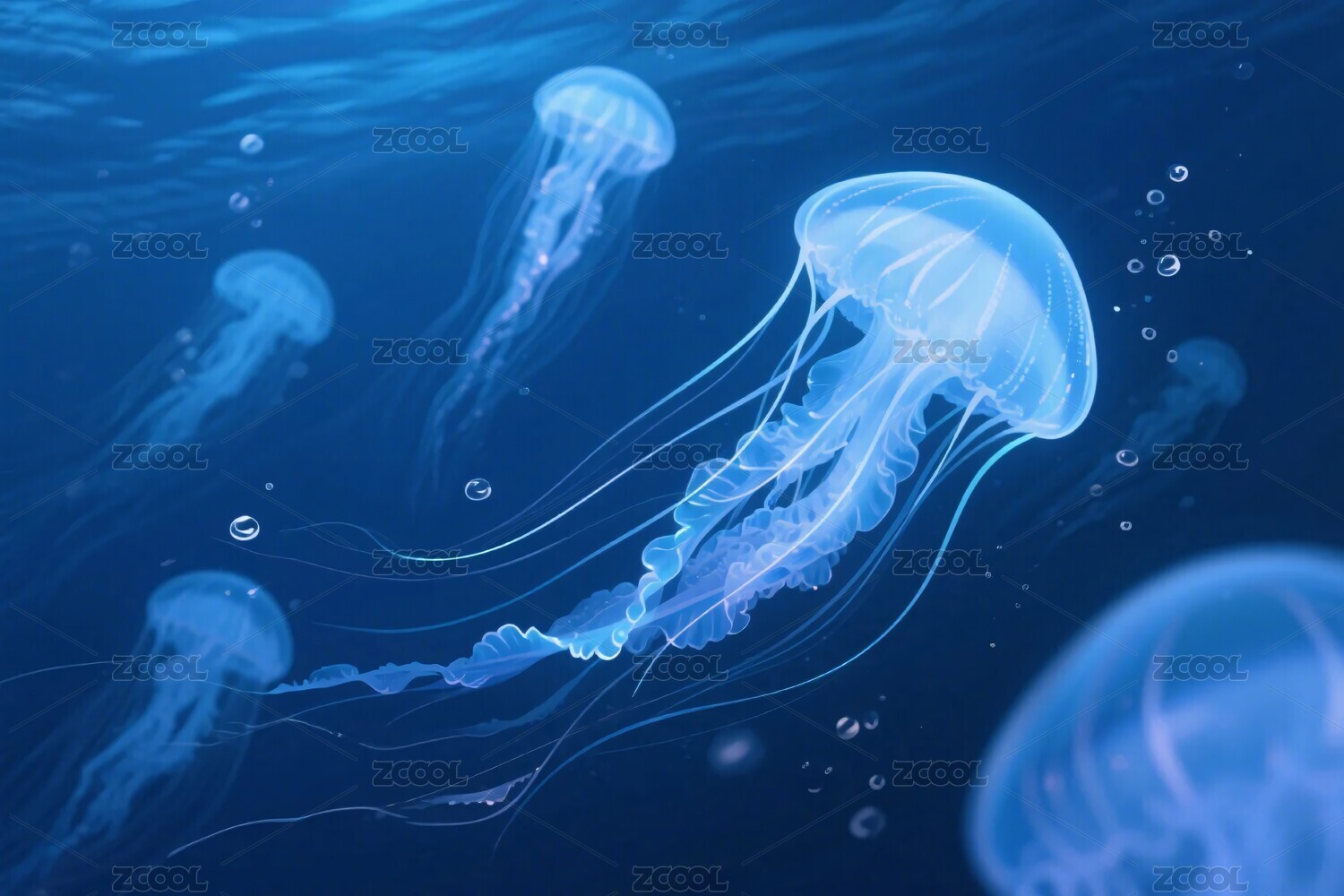 背景,透明,动物,水母,漂浮,深蓝,宁静,气泡,游动,海洋