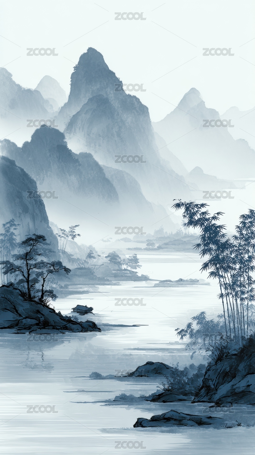 静谧,光影,松树,雪景,山水,金线,湖面,唯美