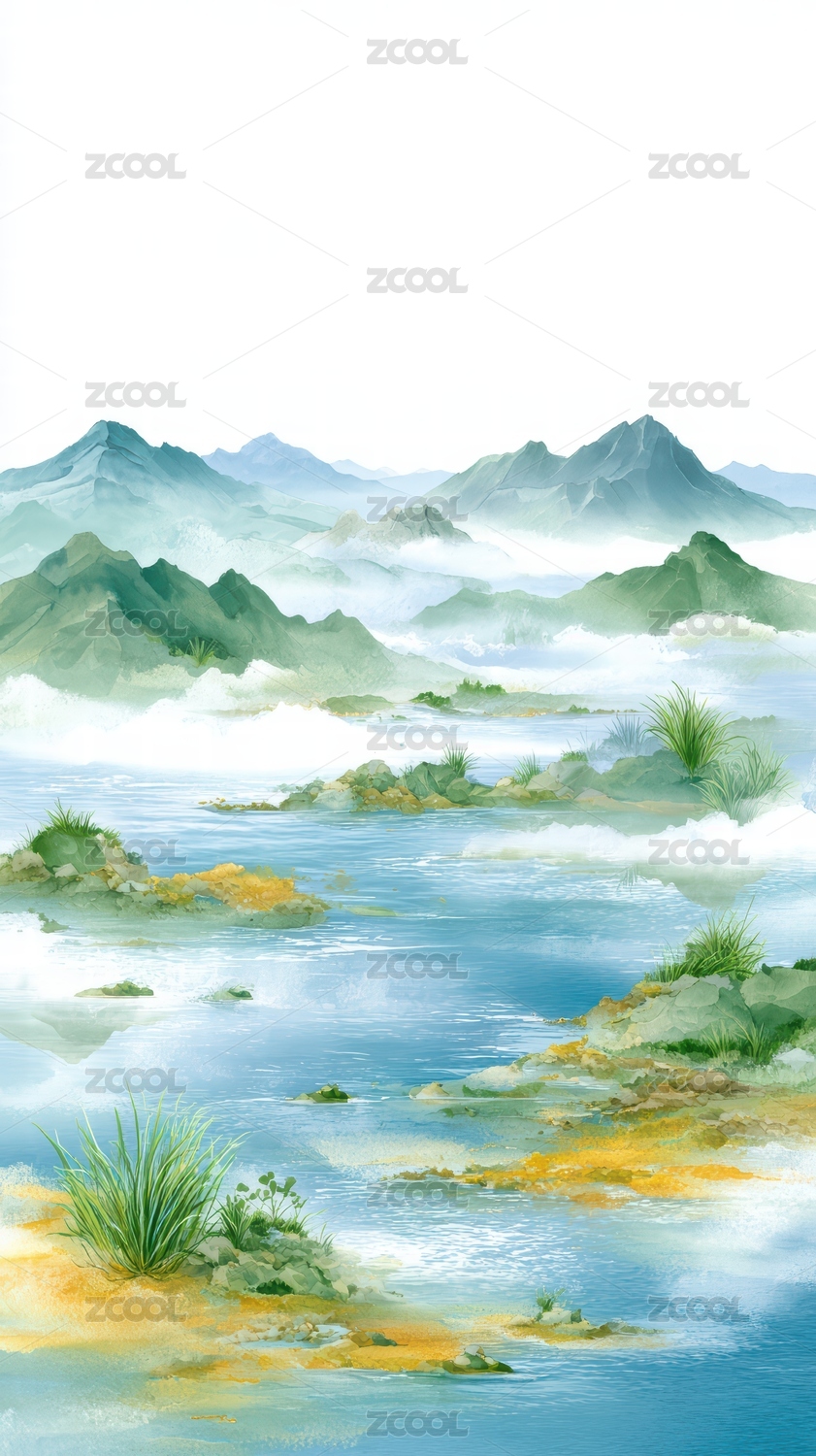 云雾,自然,清新,绿树,山水,岛屿,湖水,仙境