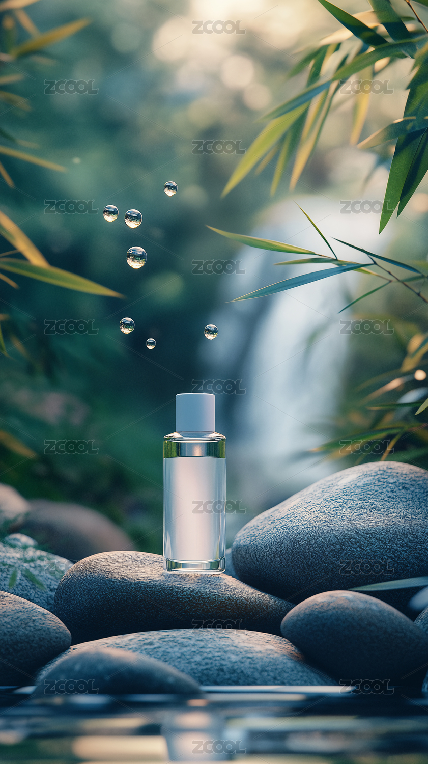 清新植物精华瓶的自然水漾场景