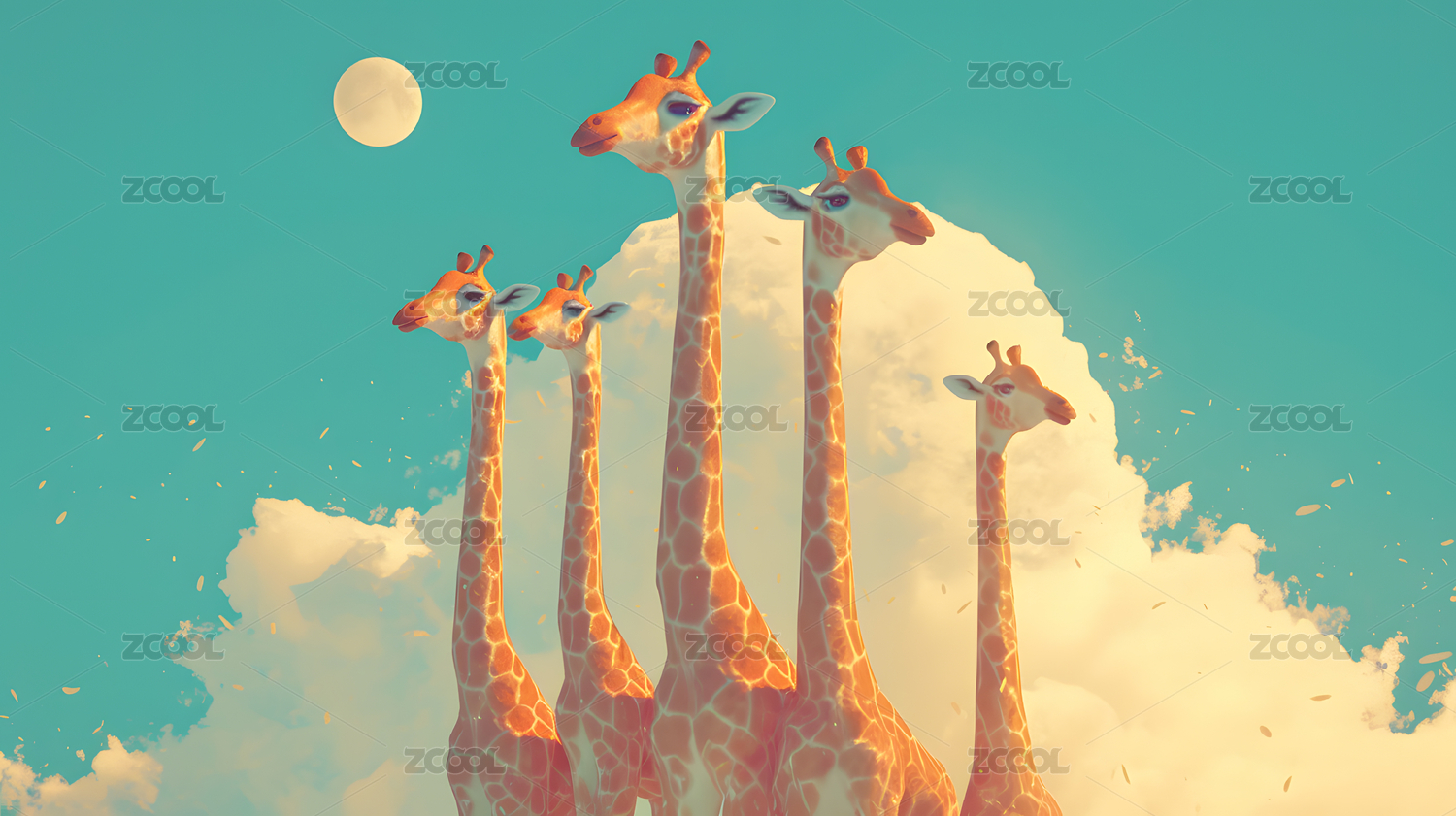 卡通长颈鹿与自然风景