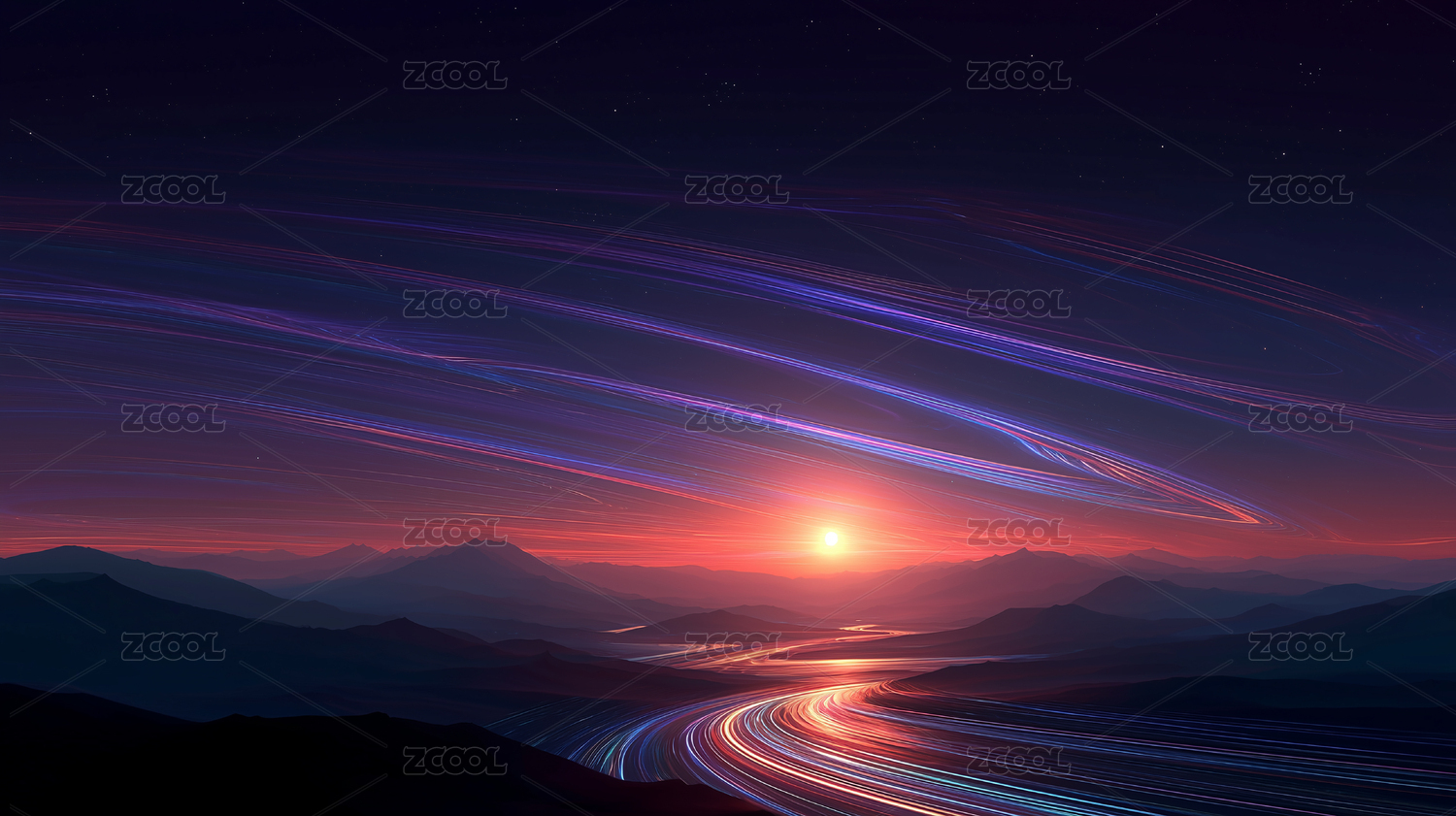 太阳,光径,高速,山脉,未来,天空,光轨,紫色,红色,蓝色