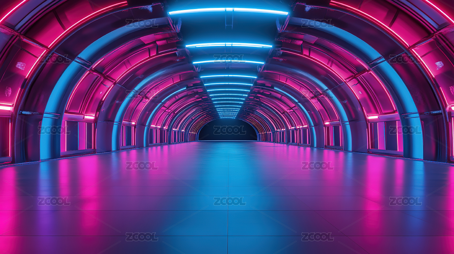 霓虹灯光隧道未来科技感空间