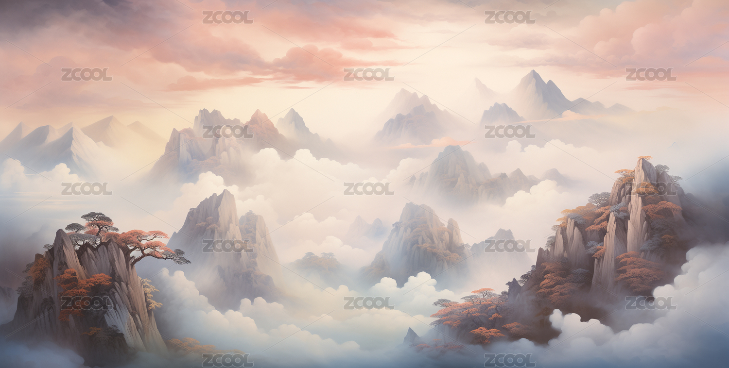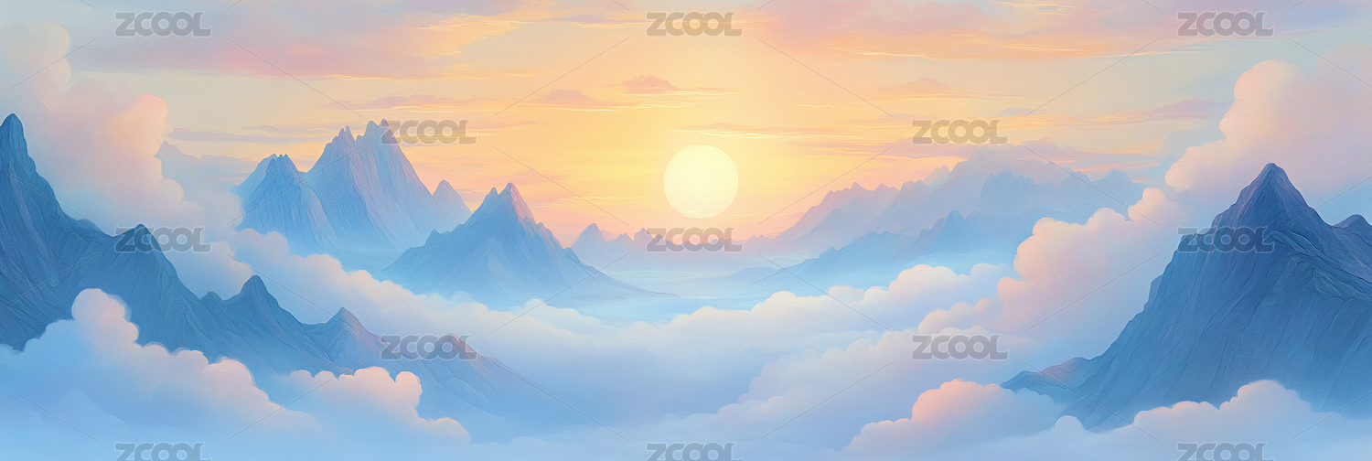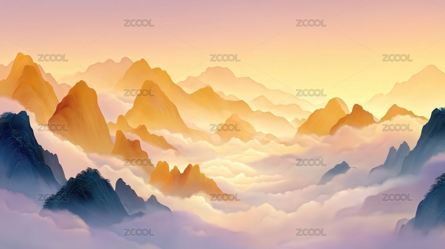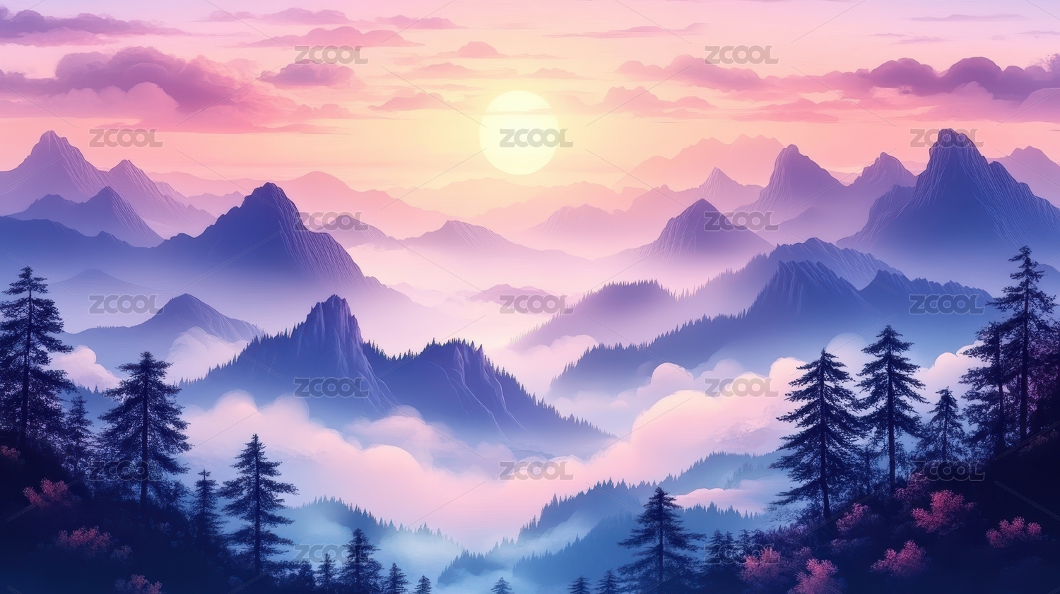 山峦,云海,梦幻,色彩,日出,森林,天空,自然,风景,层次