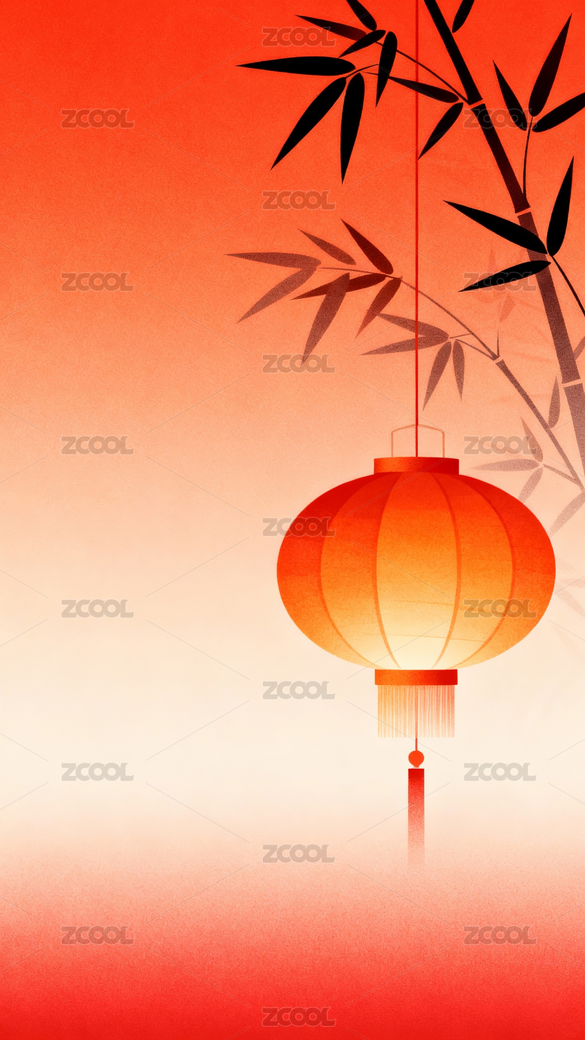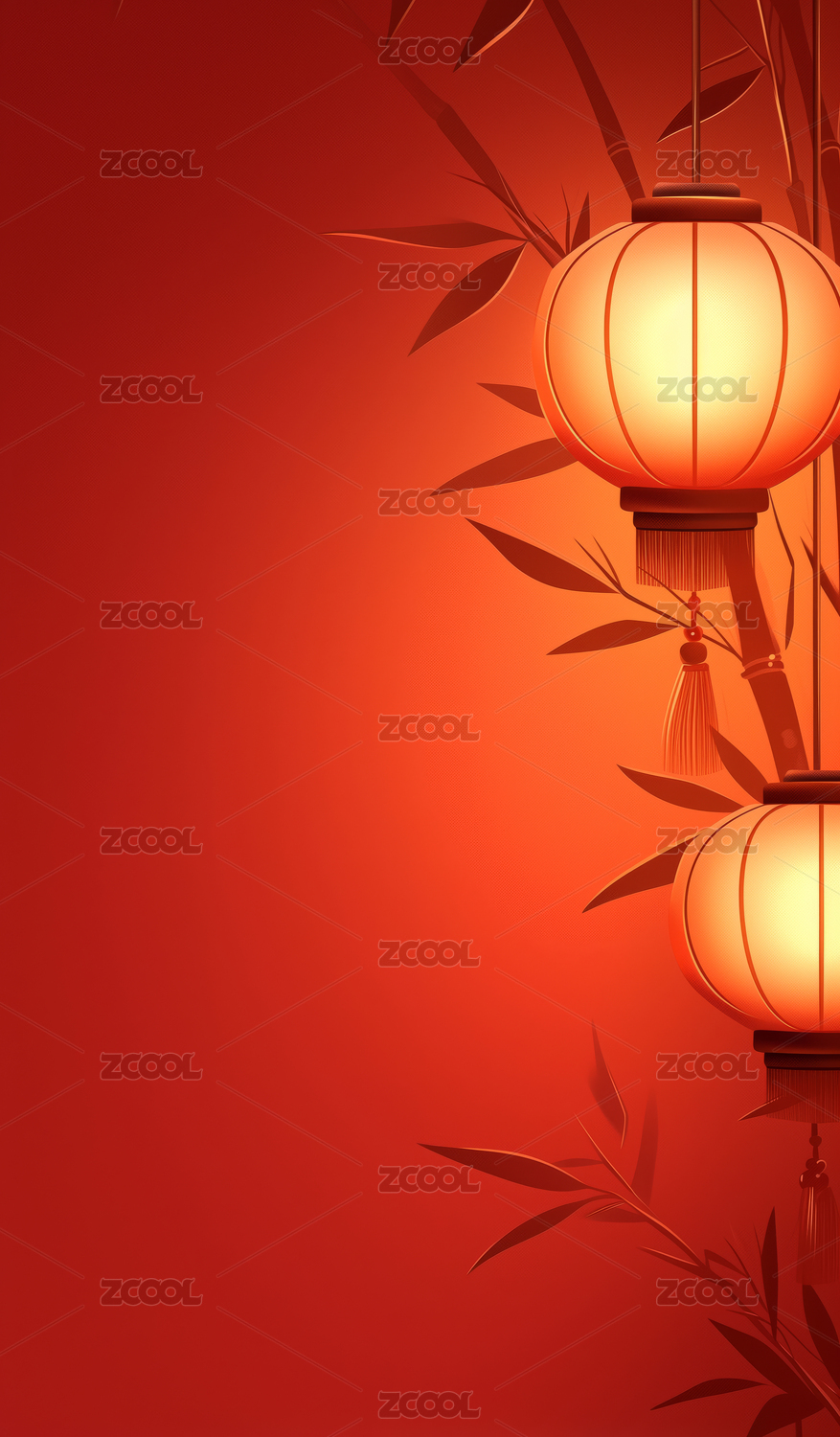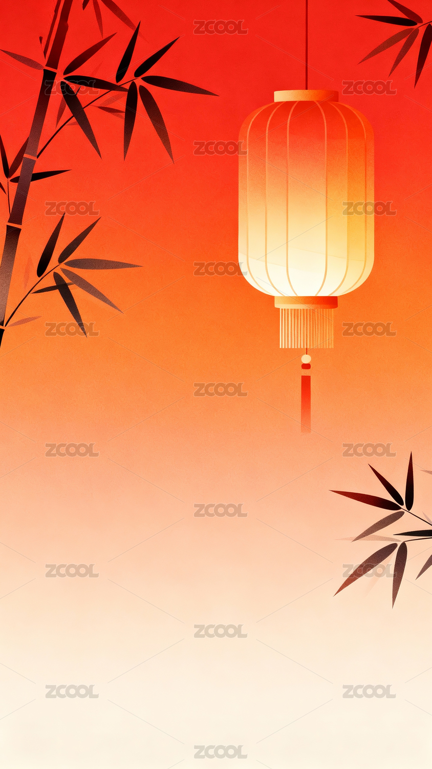 灯笼,竹枝,红色,背景,传统,装饰,节日,文化,光影,温暖