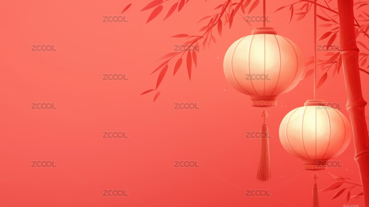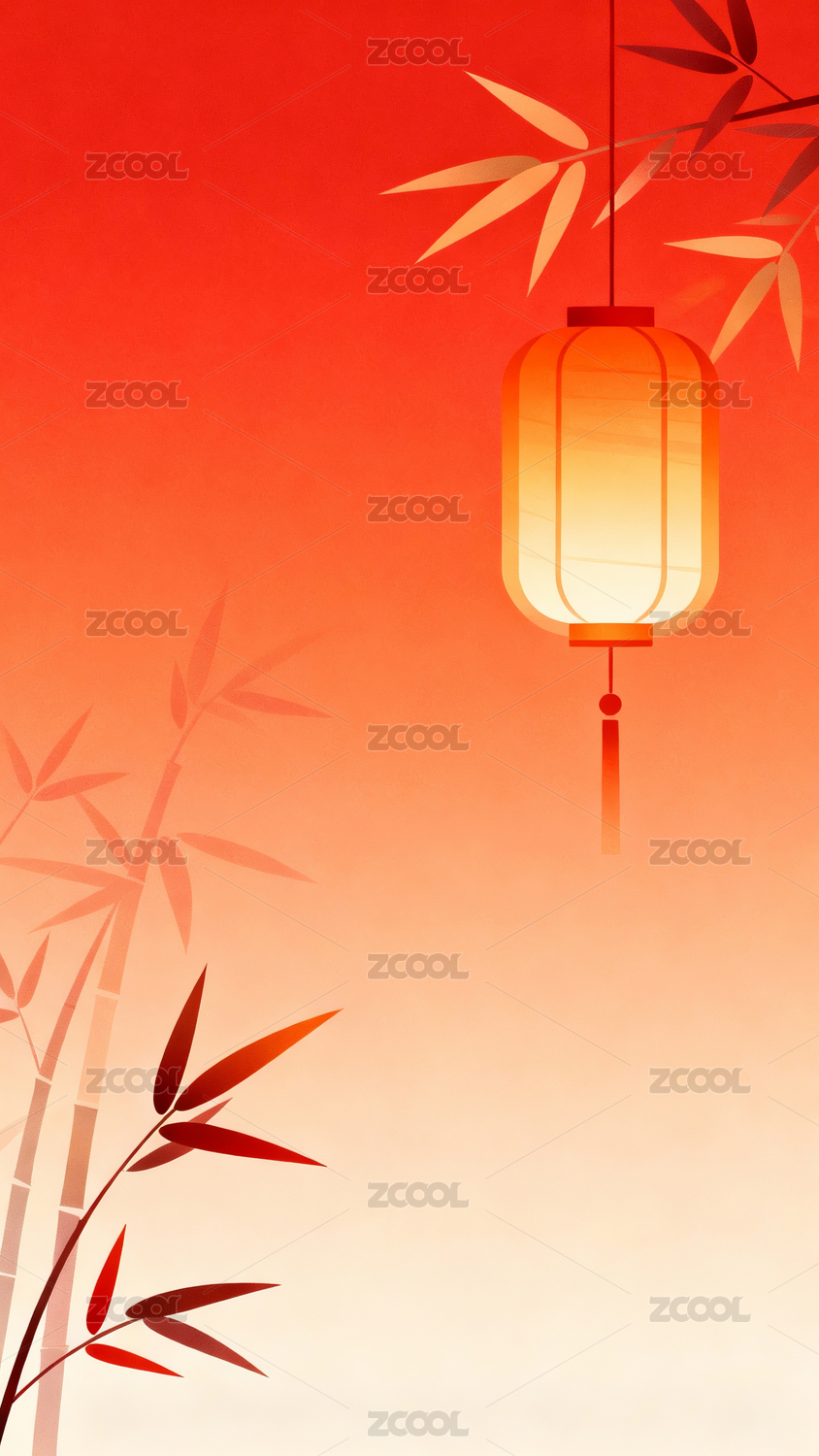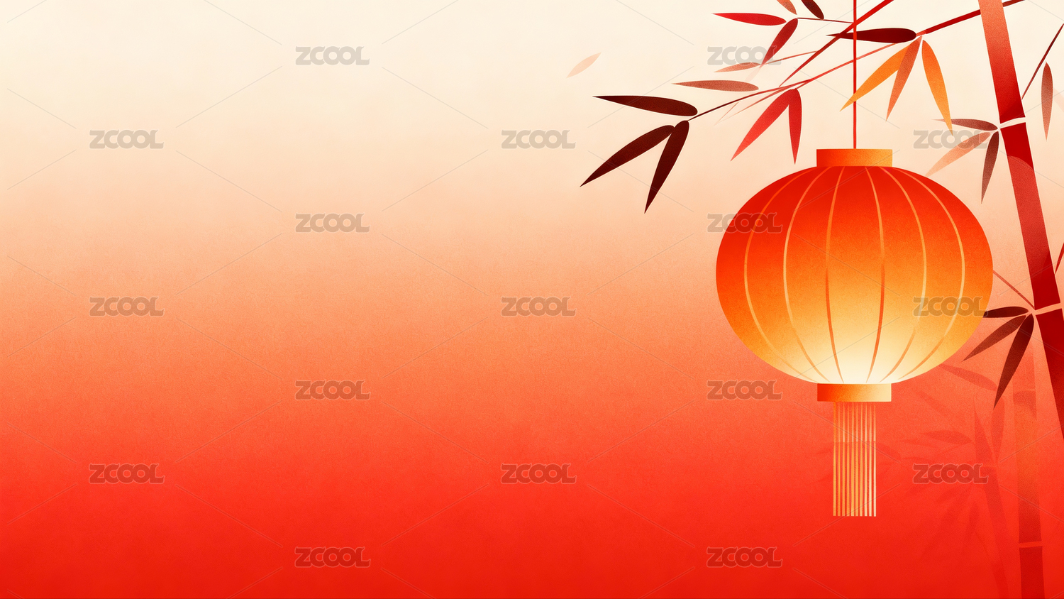 春节过年灯笼竹叶扁平风格插画背景壁纸