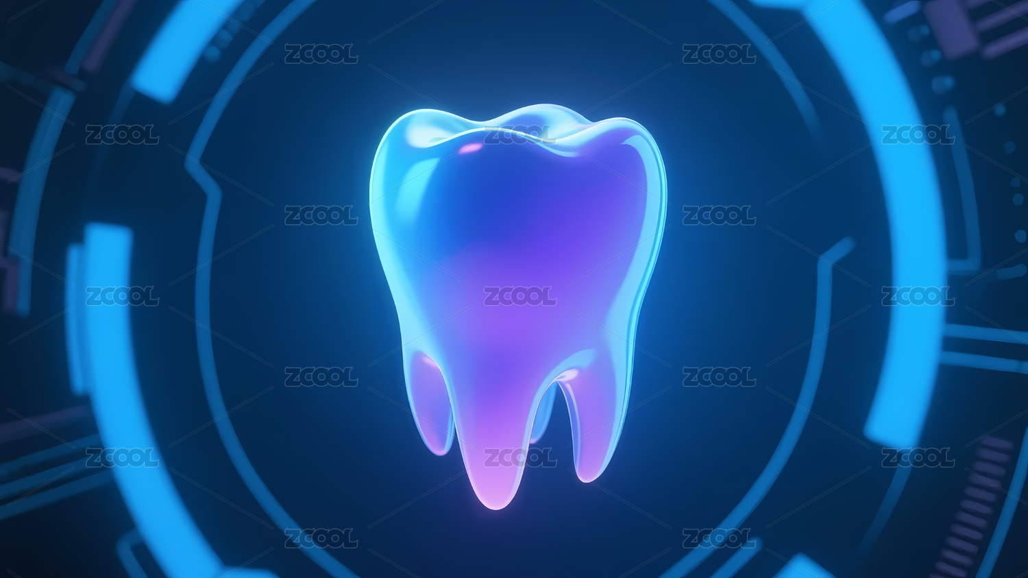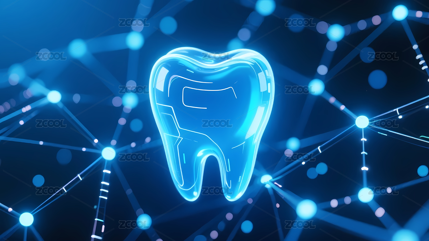 蓝色,发光,深色,背景,主体,牙齿,多个,散布,排列,类似