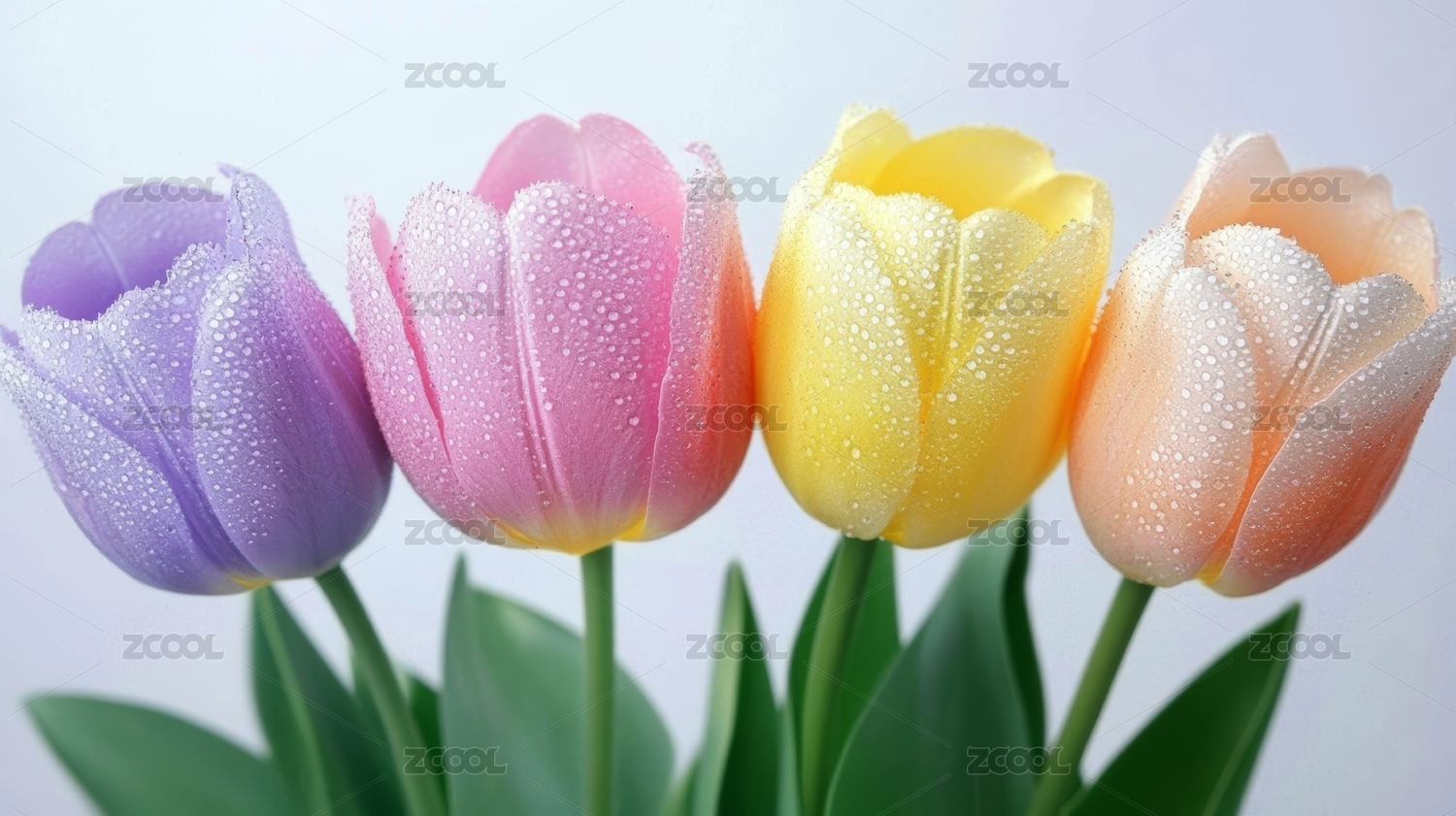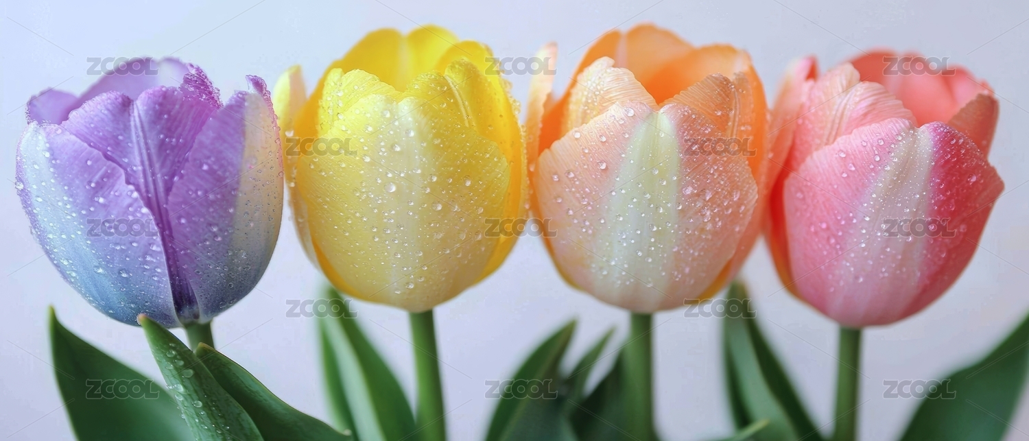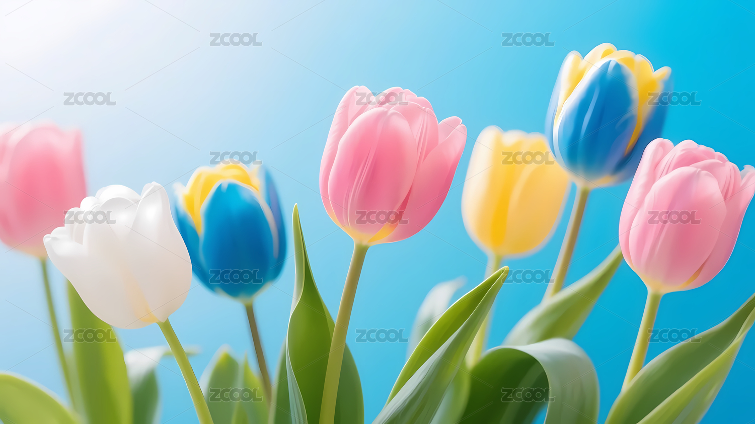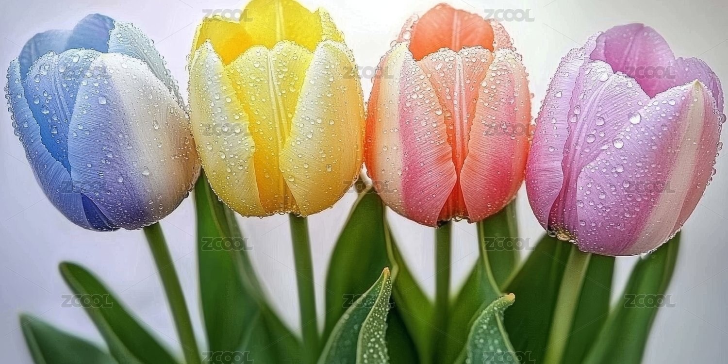 主视觉,场景,清新,多彩,郁金香,花卉,水珠,色彩,渐变,蓝黄