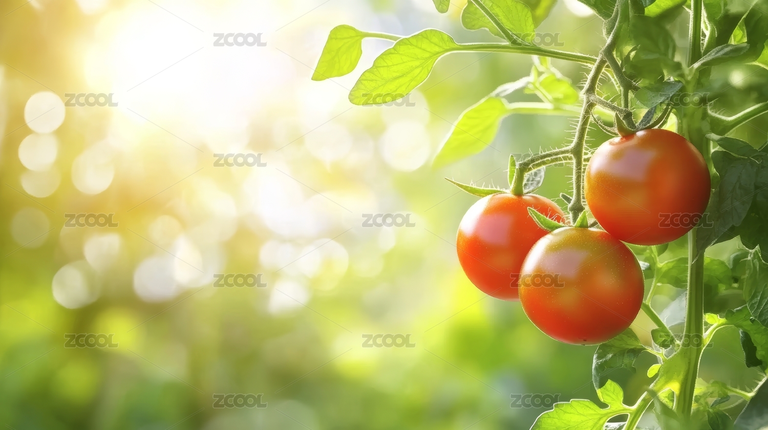 主视觉,场景,阳光,自然,绿叶,红色,番茄,暖光,田园,种植