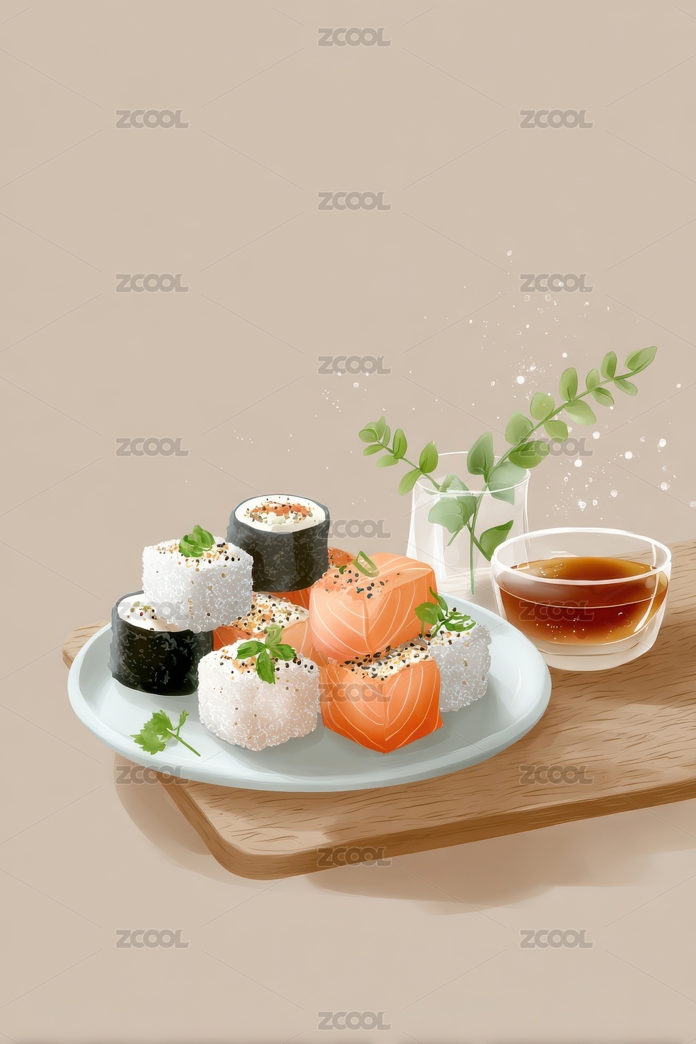 插画,鸡蛋,蒸笼,包子,木盘,热气,蒸包,早餐,食品,摆盘
