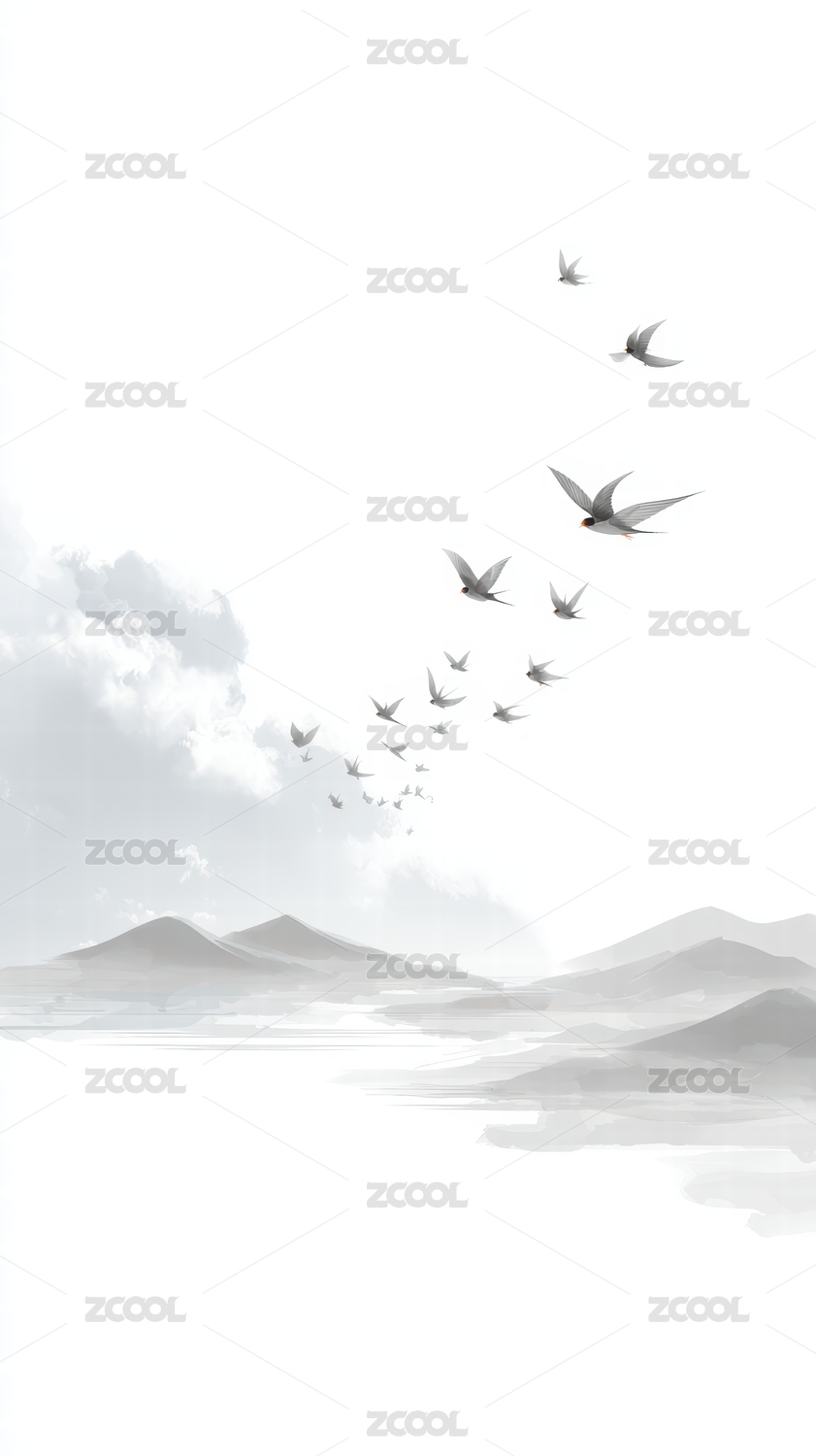 艺术,自然,水彩,飞鸟,古村,屋顶,宁静,屋檐