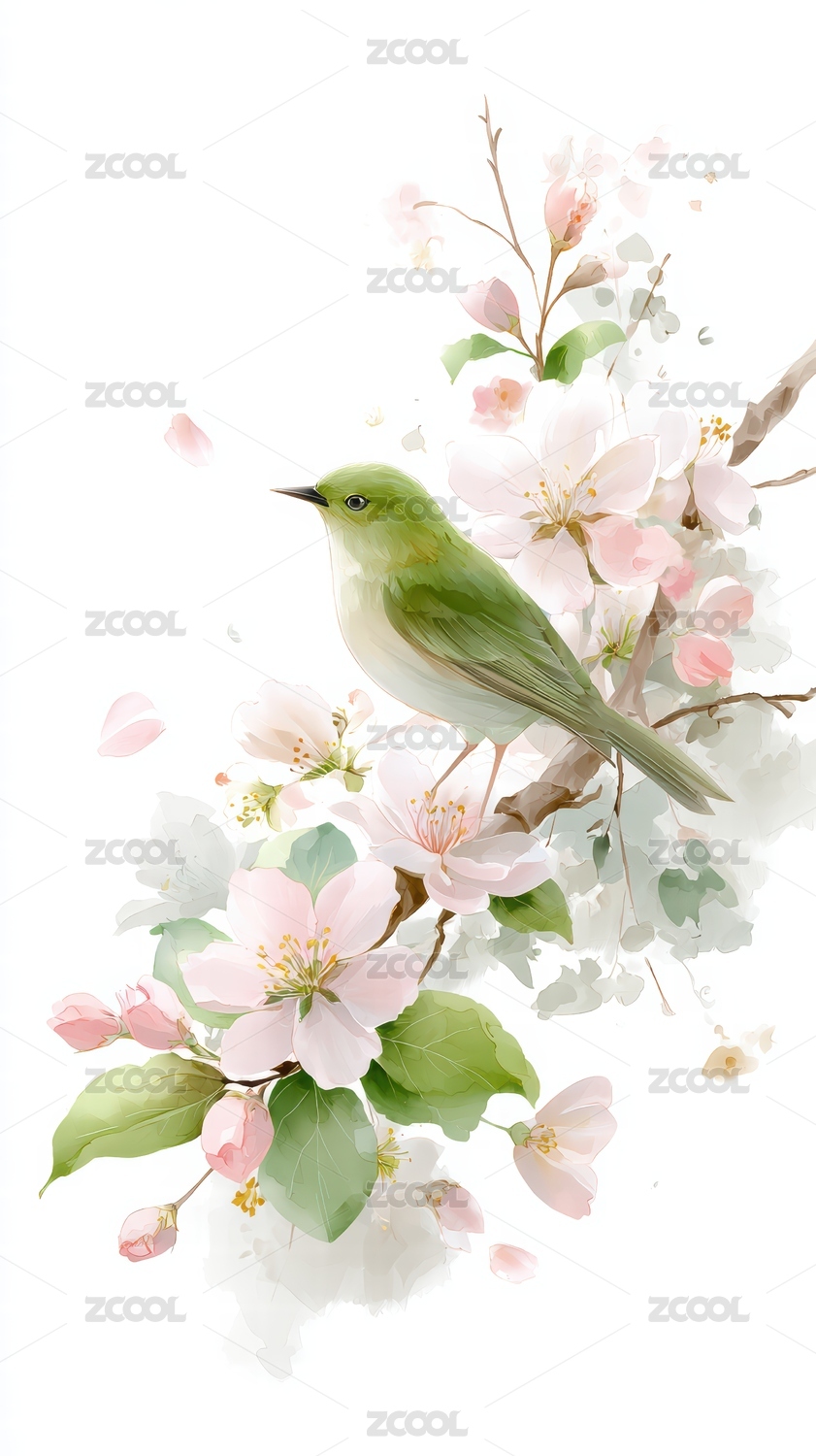 一只色彩鲜艳的鸟儿栖息在一朵盛开的花朵上