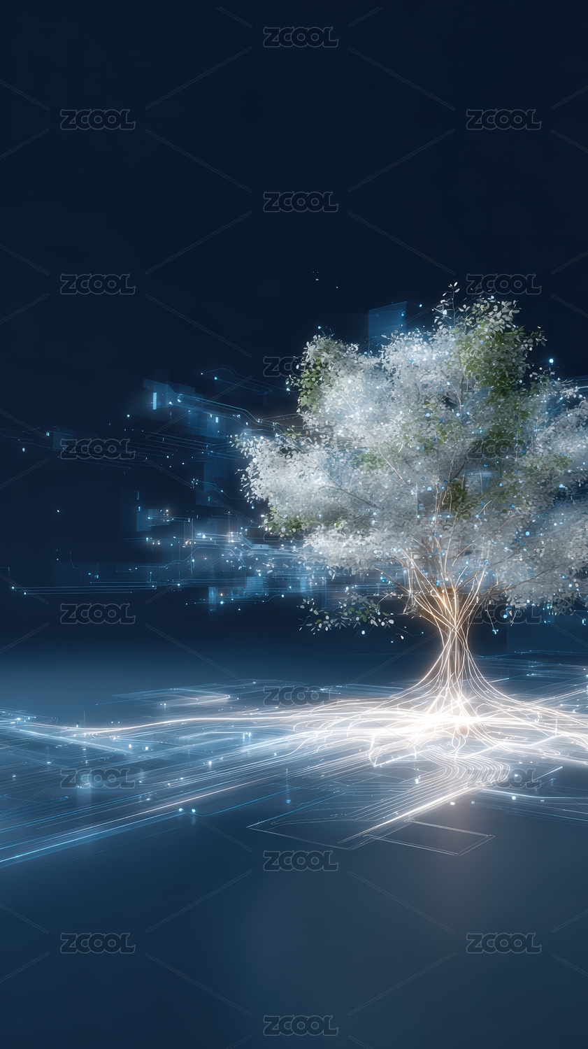 森林,倒影,神秘,夜晚,光树,魔幻,蓝光,粒子