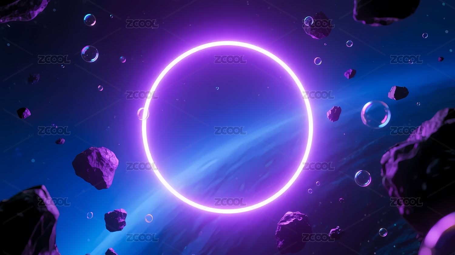 数码科技海边霓虹圆形框架抽象海报网页背景