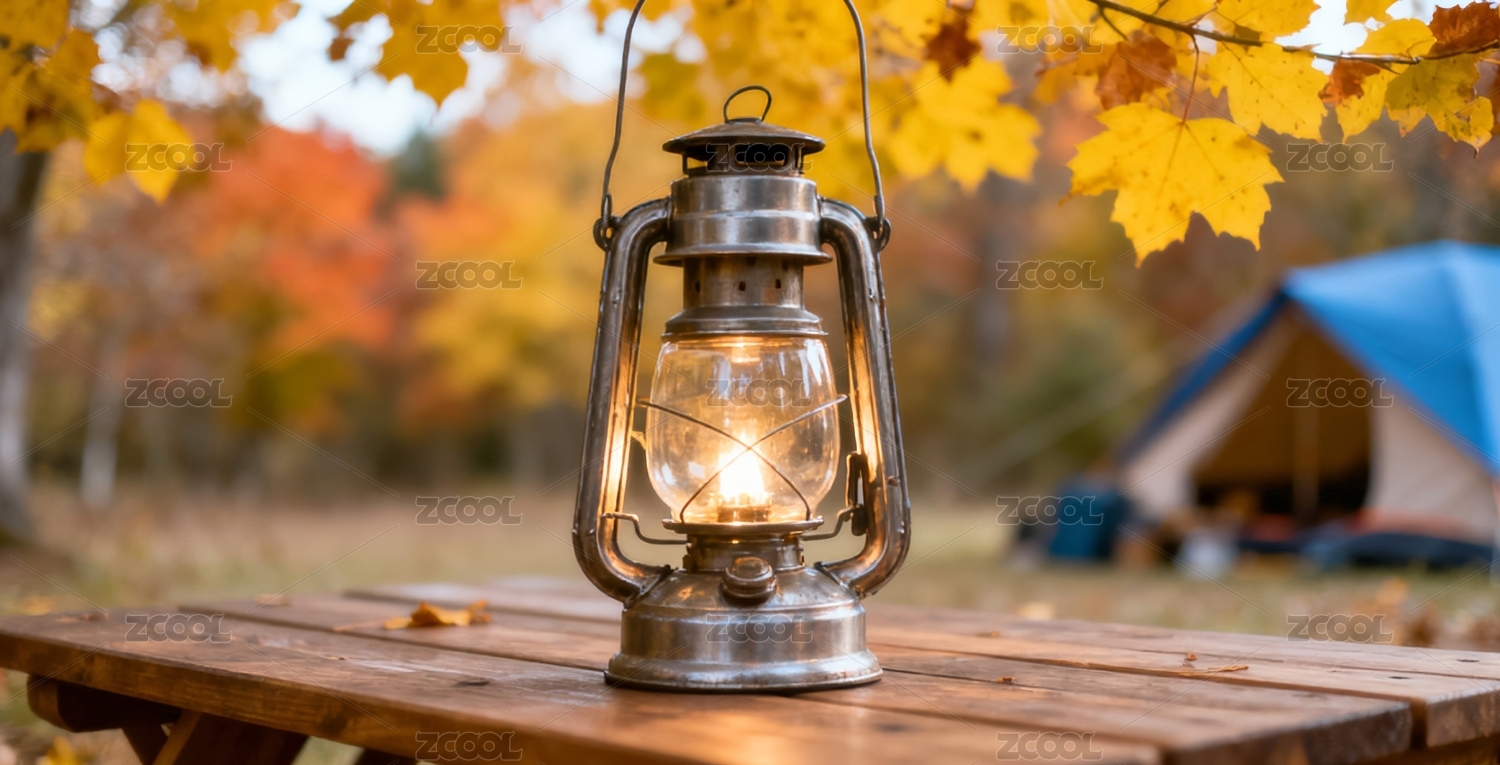 主视觉,场景,油灯,暖色调,露营,夜晚,木质,桌面,火光,帐篷