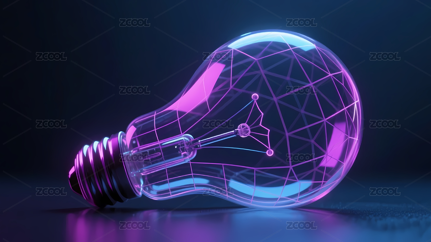紫蓝几何网格发光灯泡