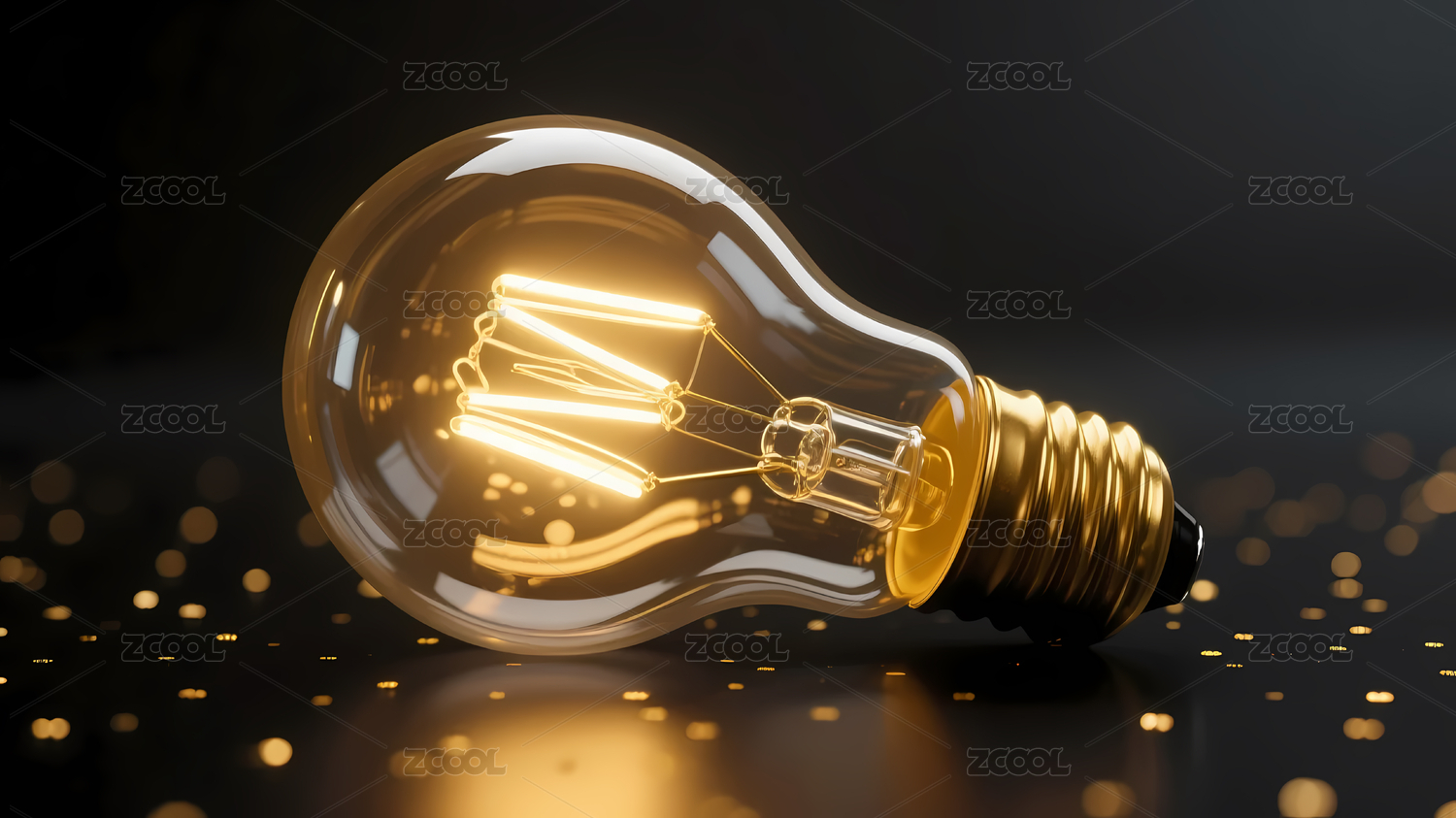 透明灯泡与金色灯丝