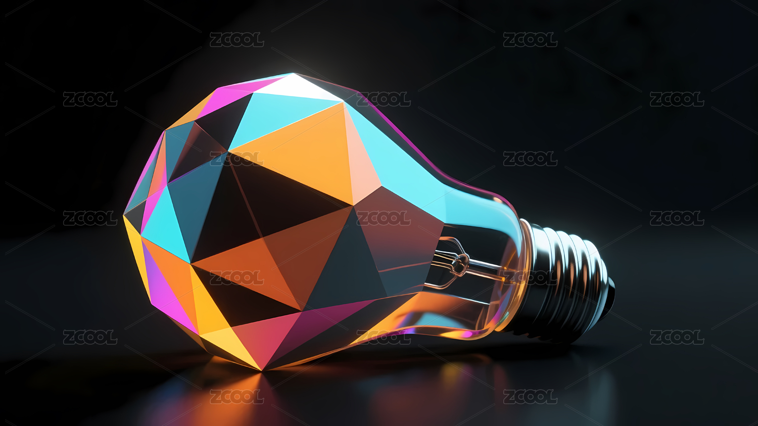 彩色三角形多面体灯泡