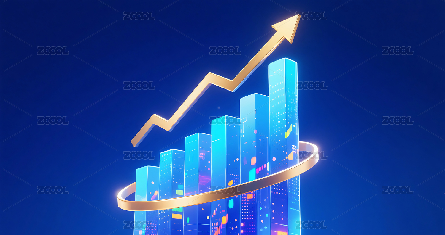 蓝色柱状图上升箭头