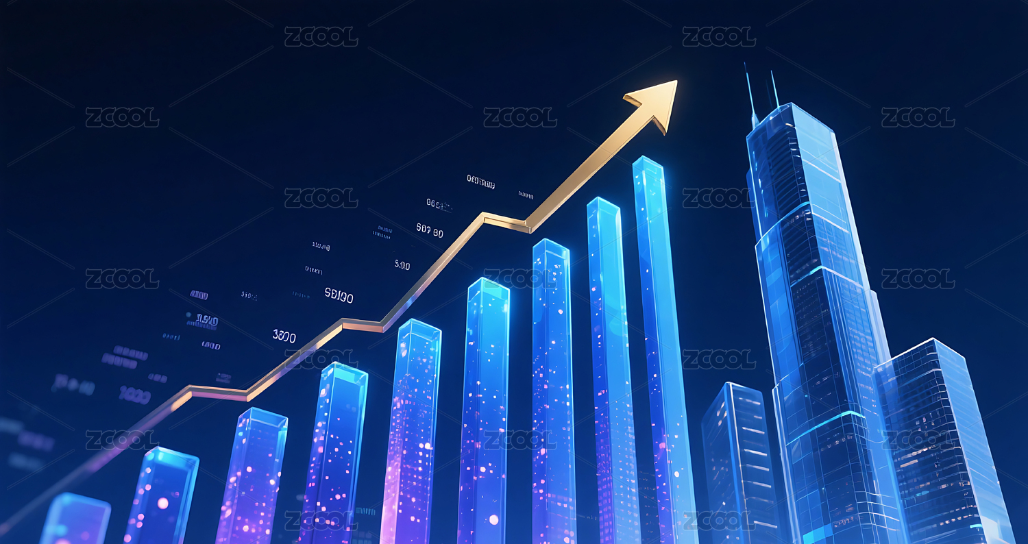 蓝色调上升折线图