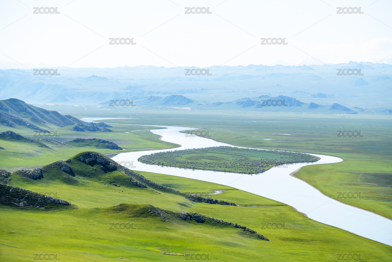 中国新疆巴音布鲁克草原通天河九曲十八弯