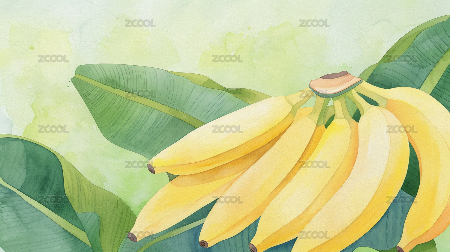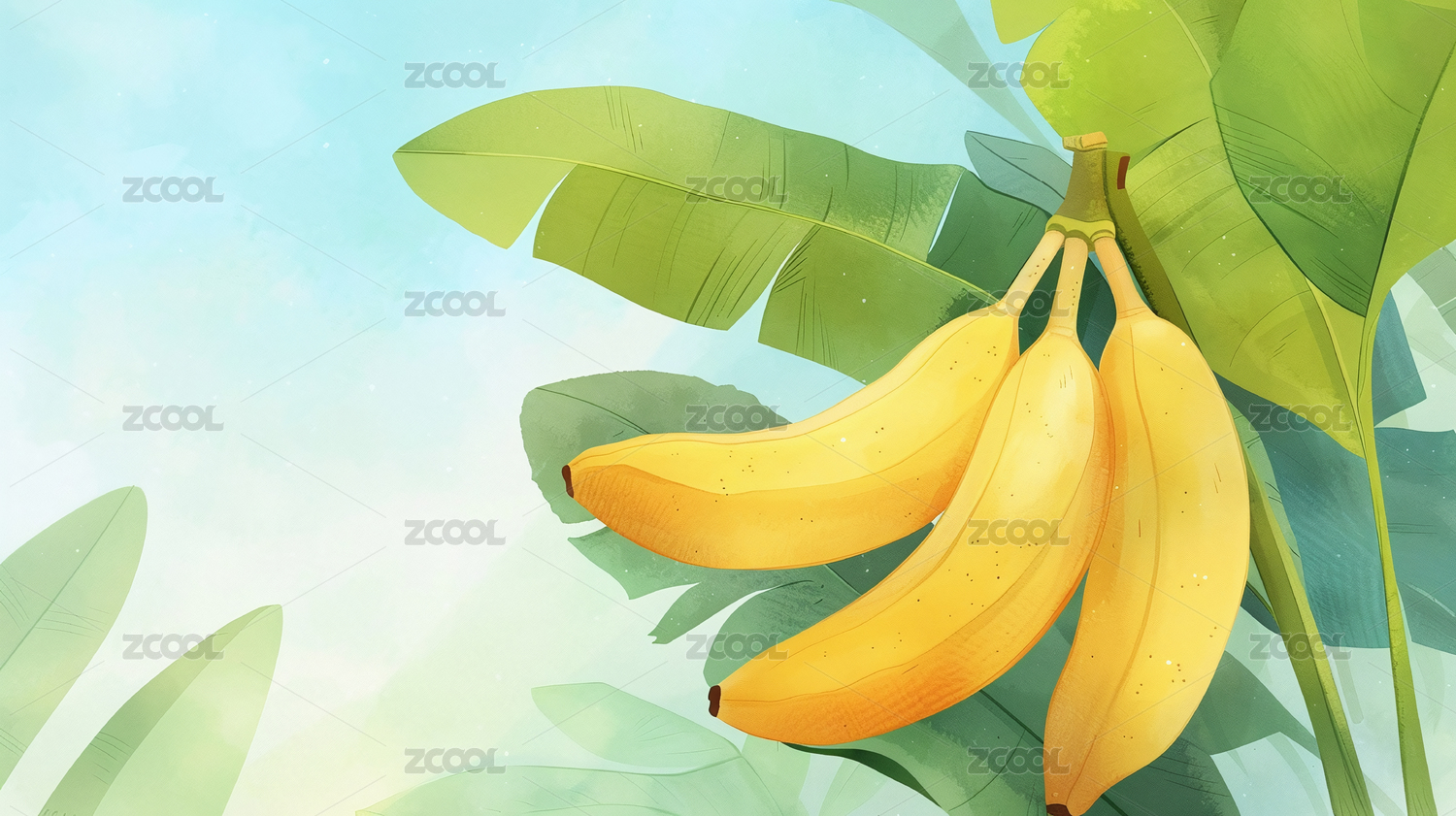淡彩手绘风格水果系列之香蕉