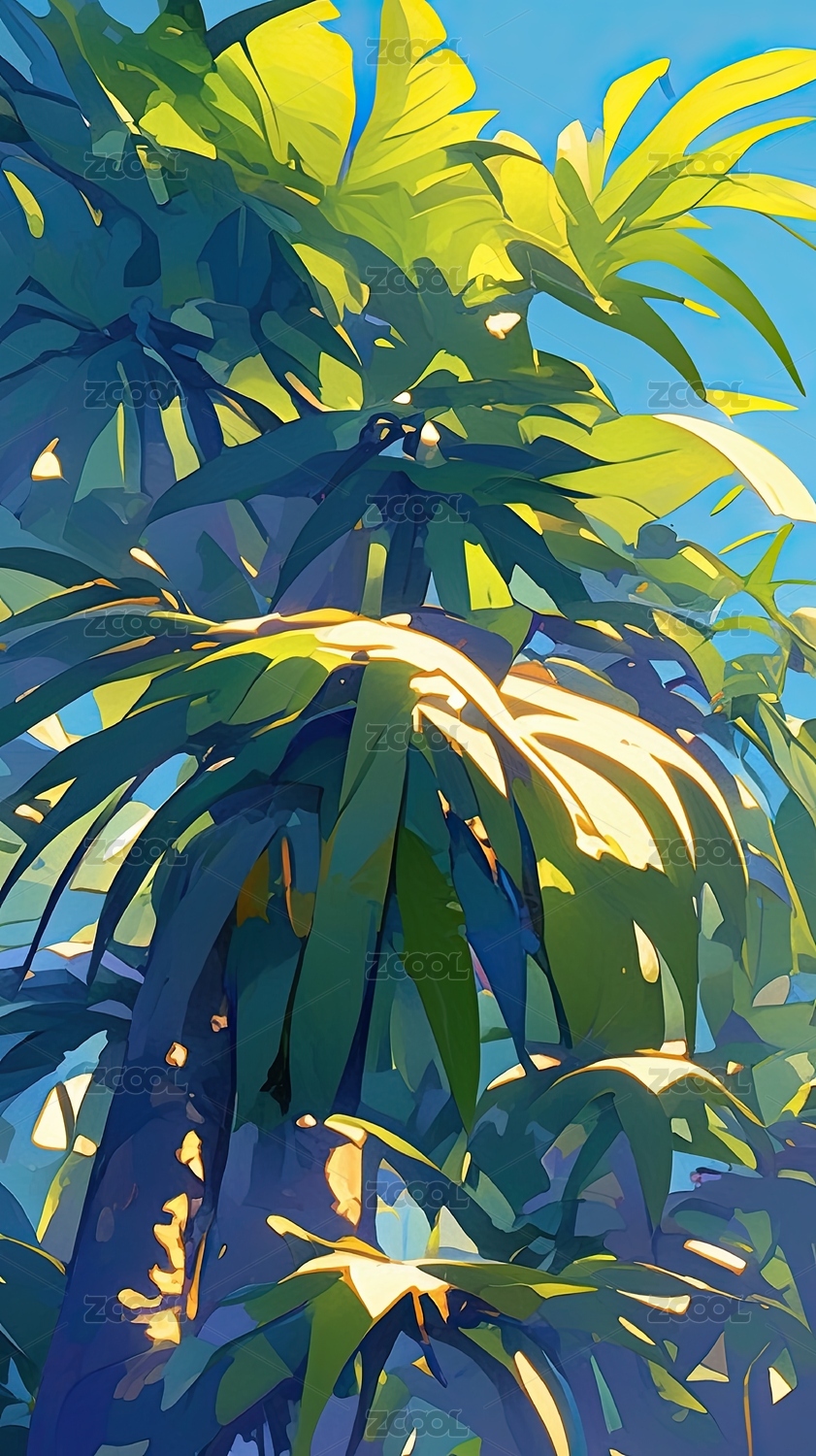 阳光穿透的热带植物