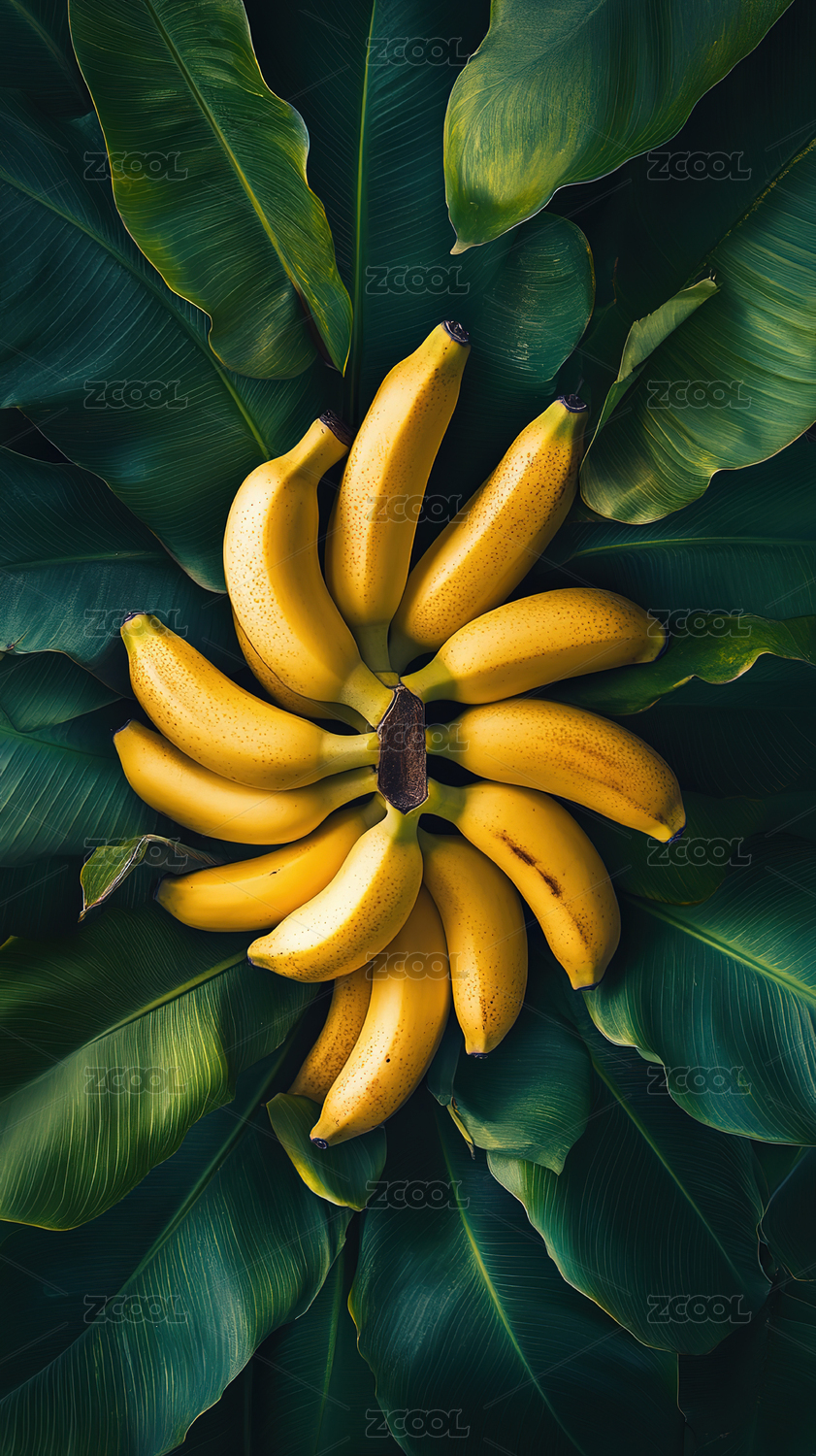 热带香蕉与鲜艳花朵