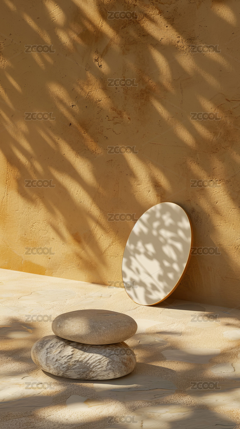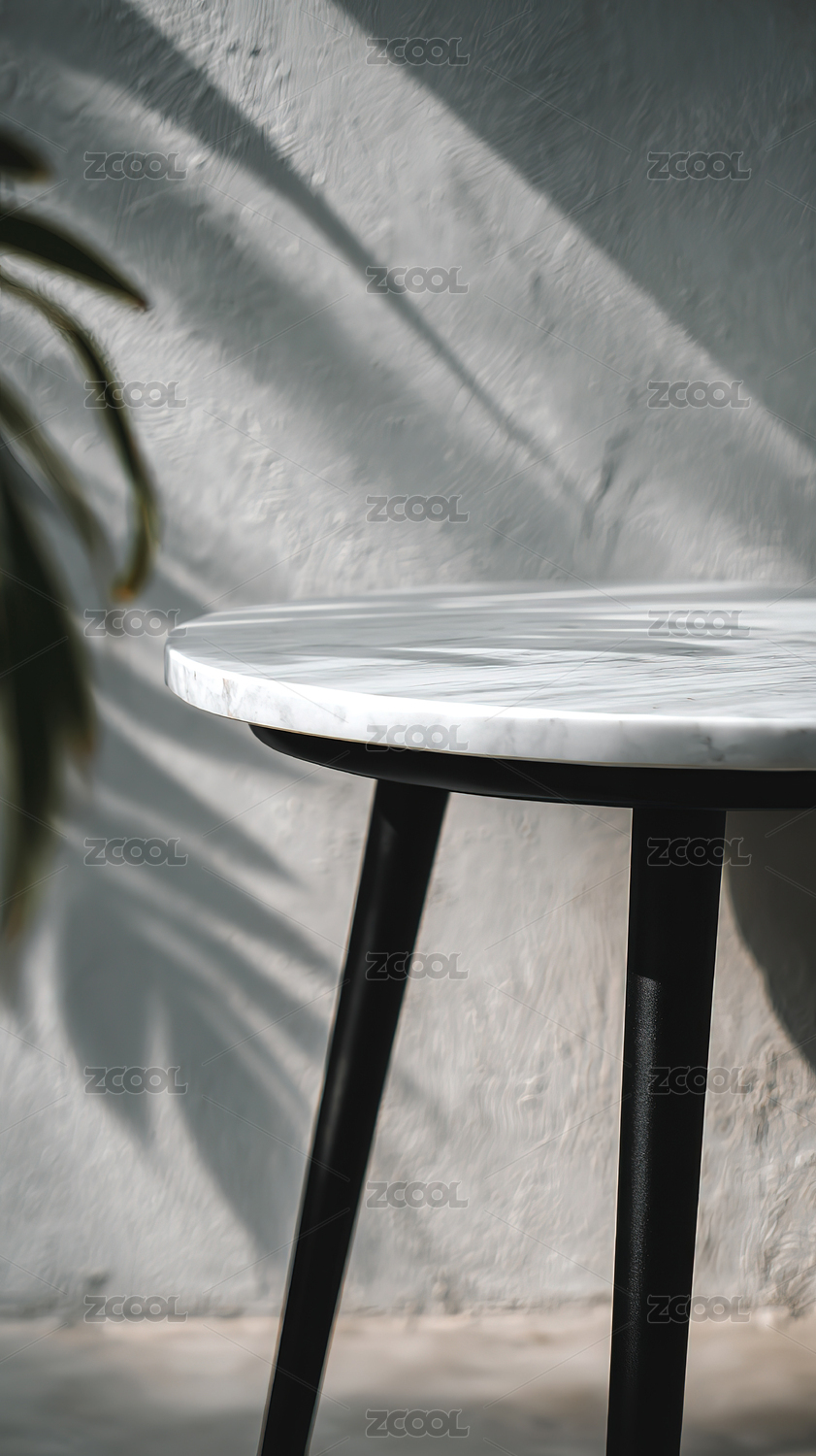 石桌,简约,灰色,墙面,植物,光影,质感,圆形,天然,材料