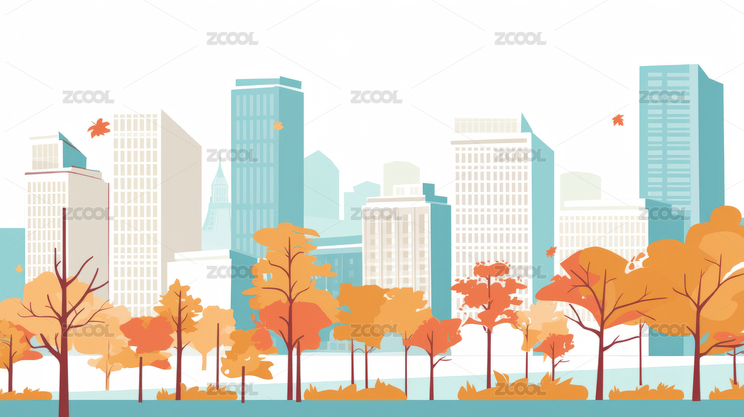 秋天城市建筑风景插画