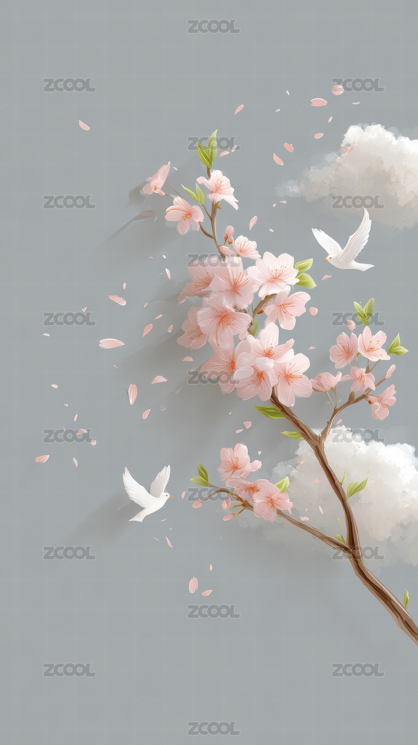 春枝绽放和平鸽翩翩起舞的意境