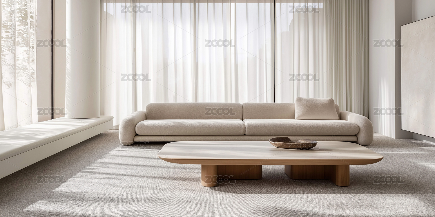 沙发,茶几,落地窗,绿植,挂画,地毯,阳光,室内,极简,装饰
