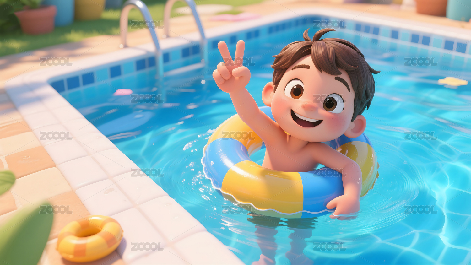 泳池,游泳,男孩,暑假,儿童,卡通,夏天,泳圈,玩水,戏水