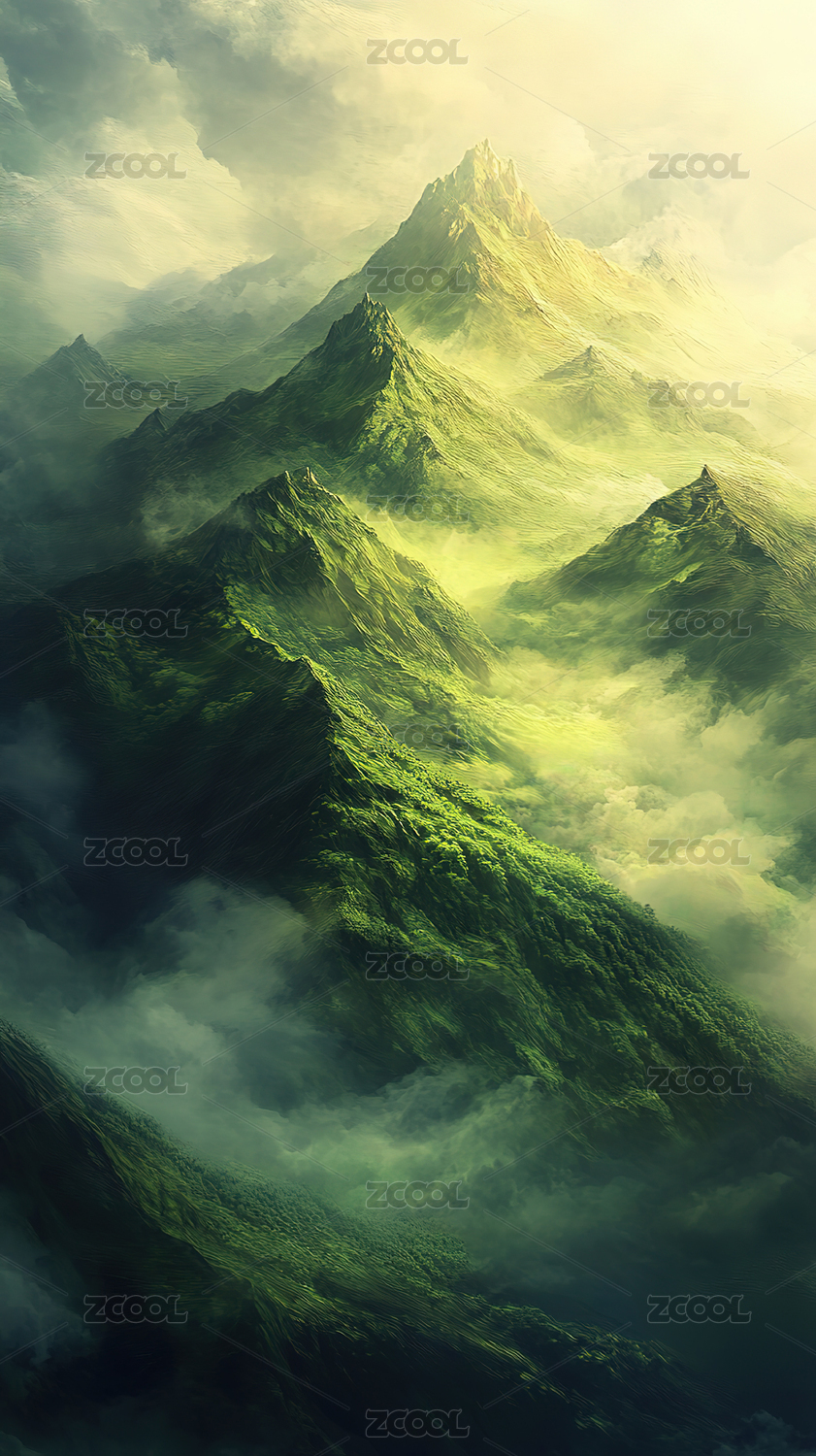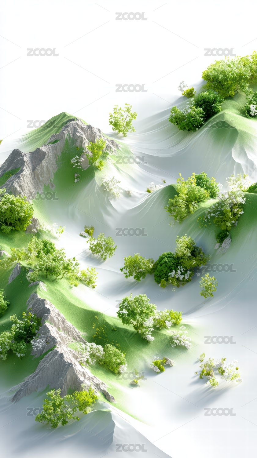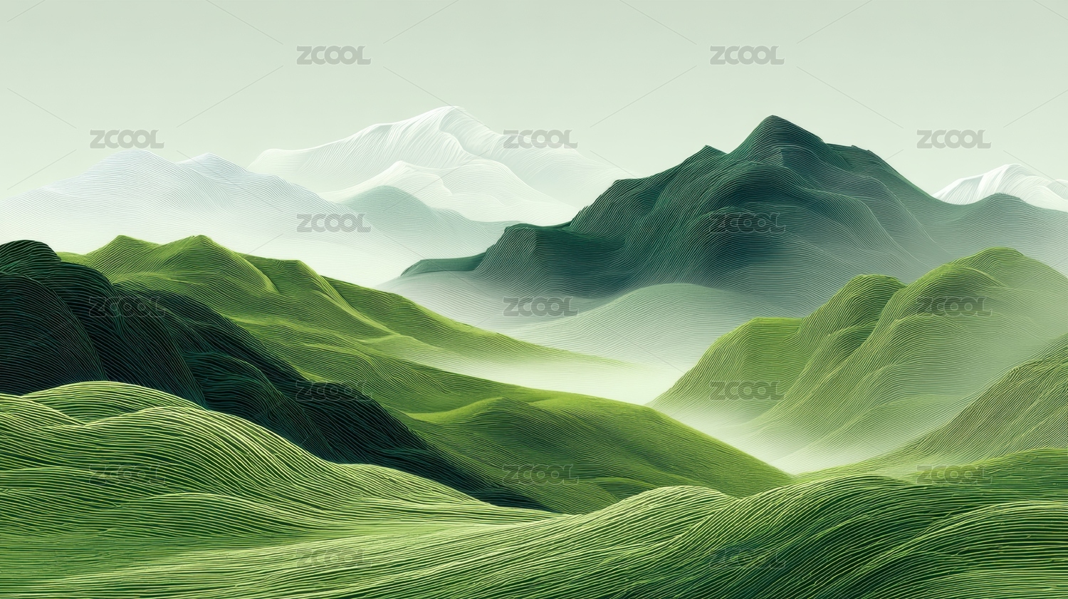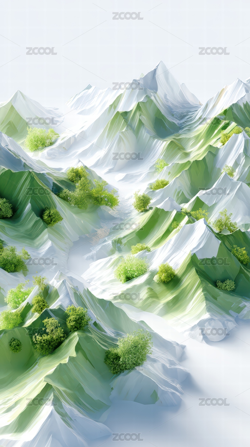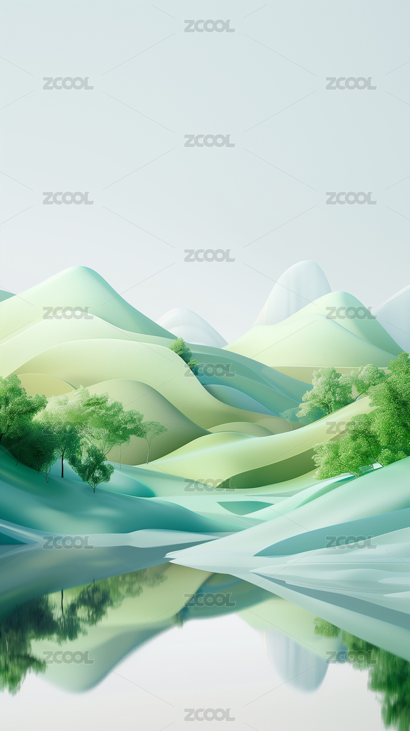 抽象嫩绿黄绿颜料山峰海浪流体3D立体插画