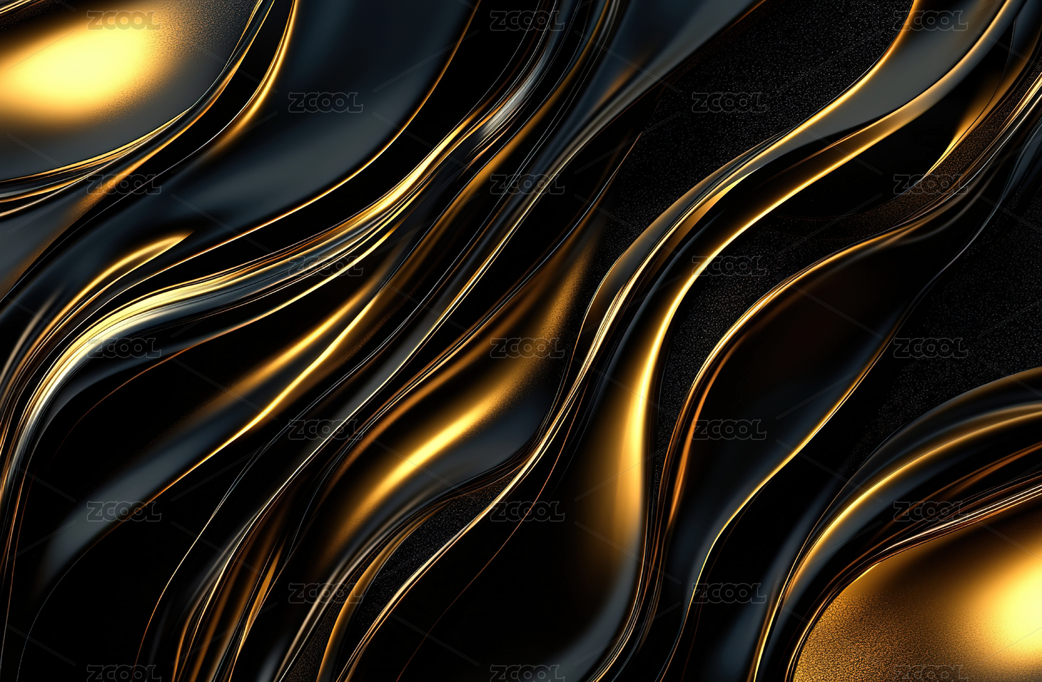 国风黑金折纸剪纸抽象流体四方连续3D背景