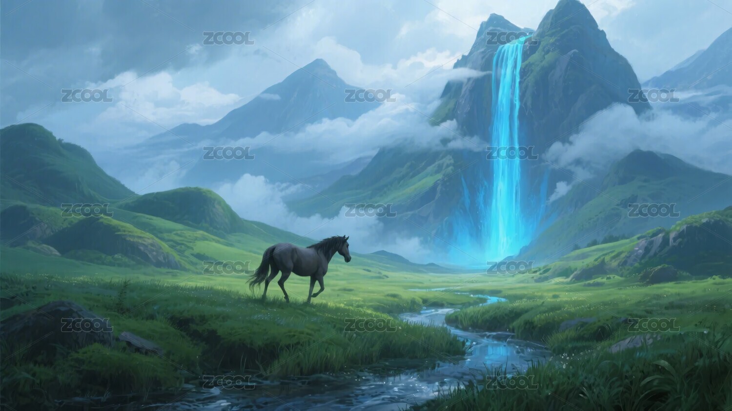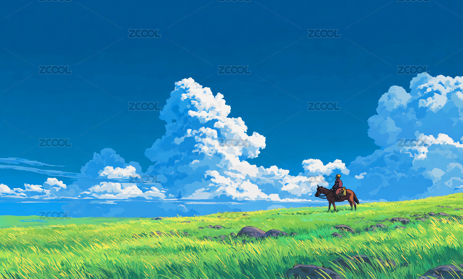 水墨山水画卷少侠公子牵马天涯笑傲江湖
