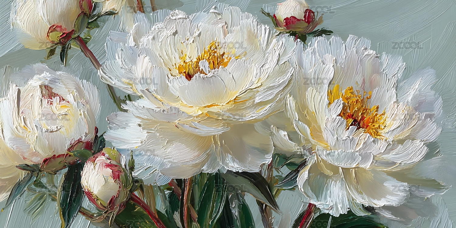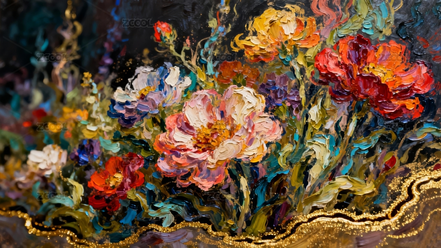 厚涂粗笔触印象派花朵牡丹背景海报装饰画