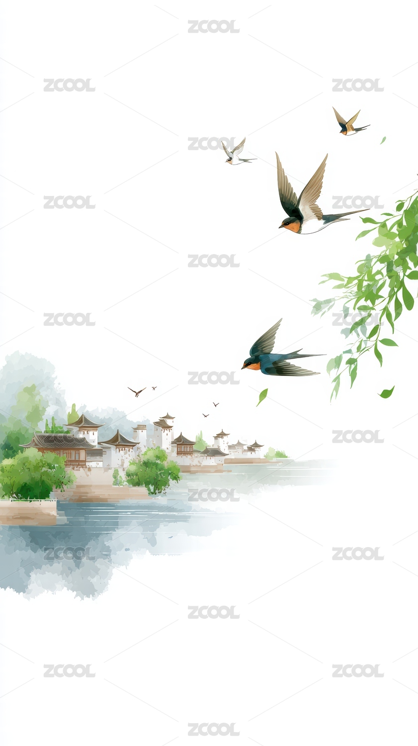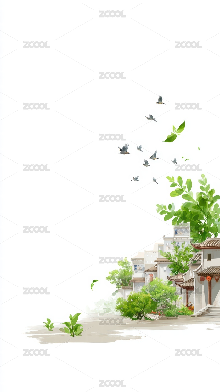 清新,自然,绿叶,飞舞,溪流,群鸟,水石,生机