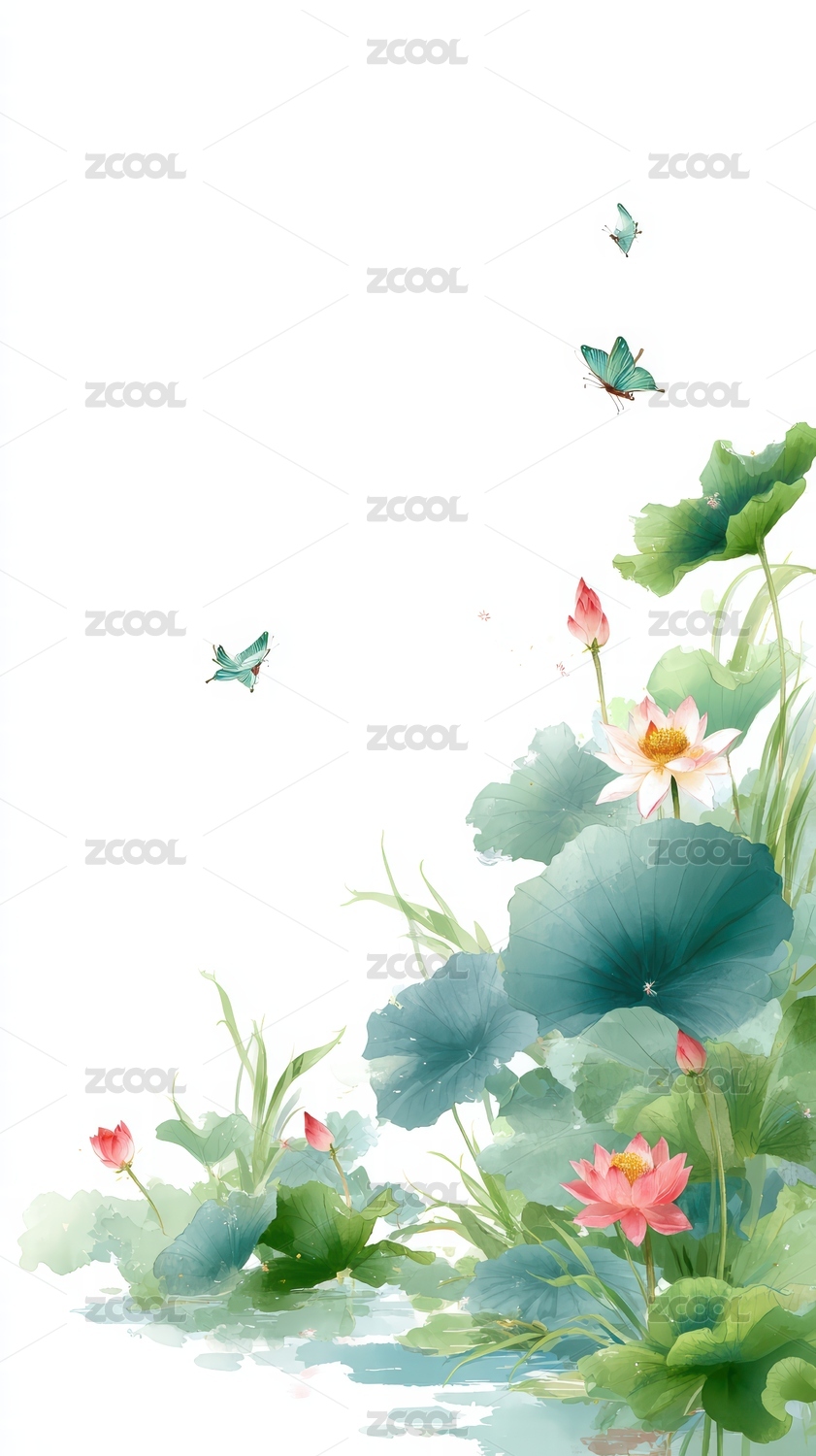 池塘荷叶翩翩蝴蝶的梦幻场景