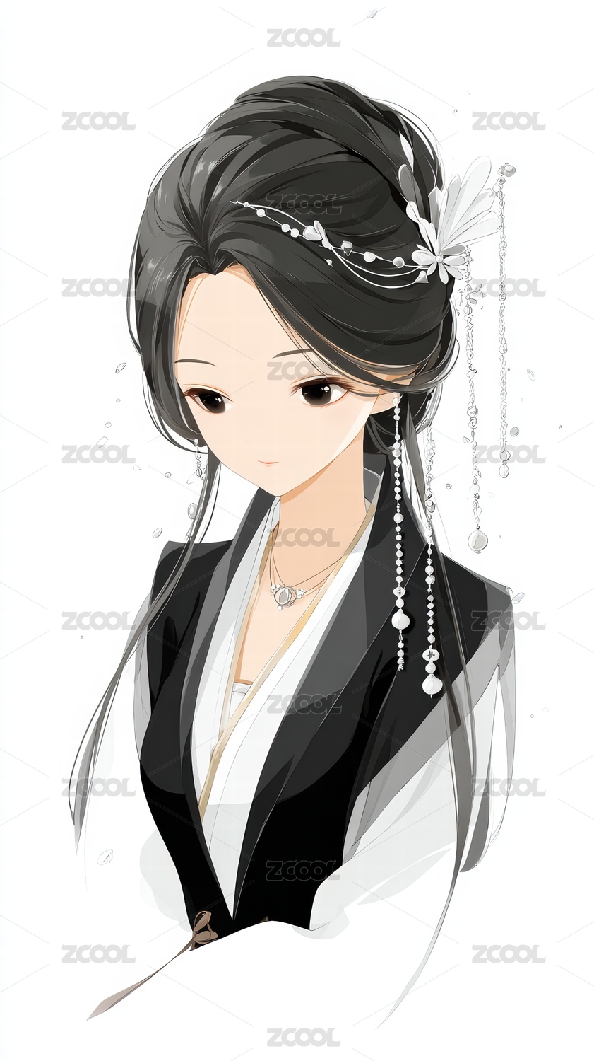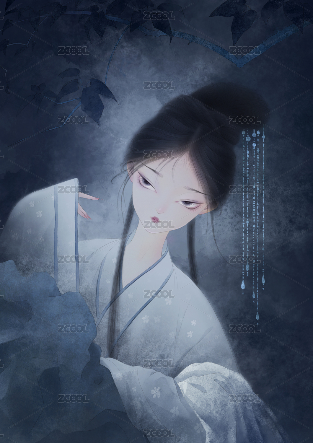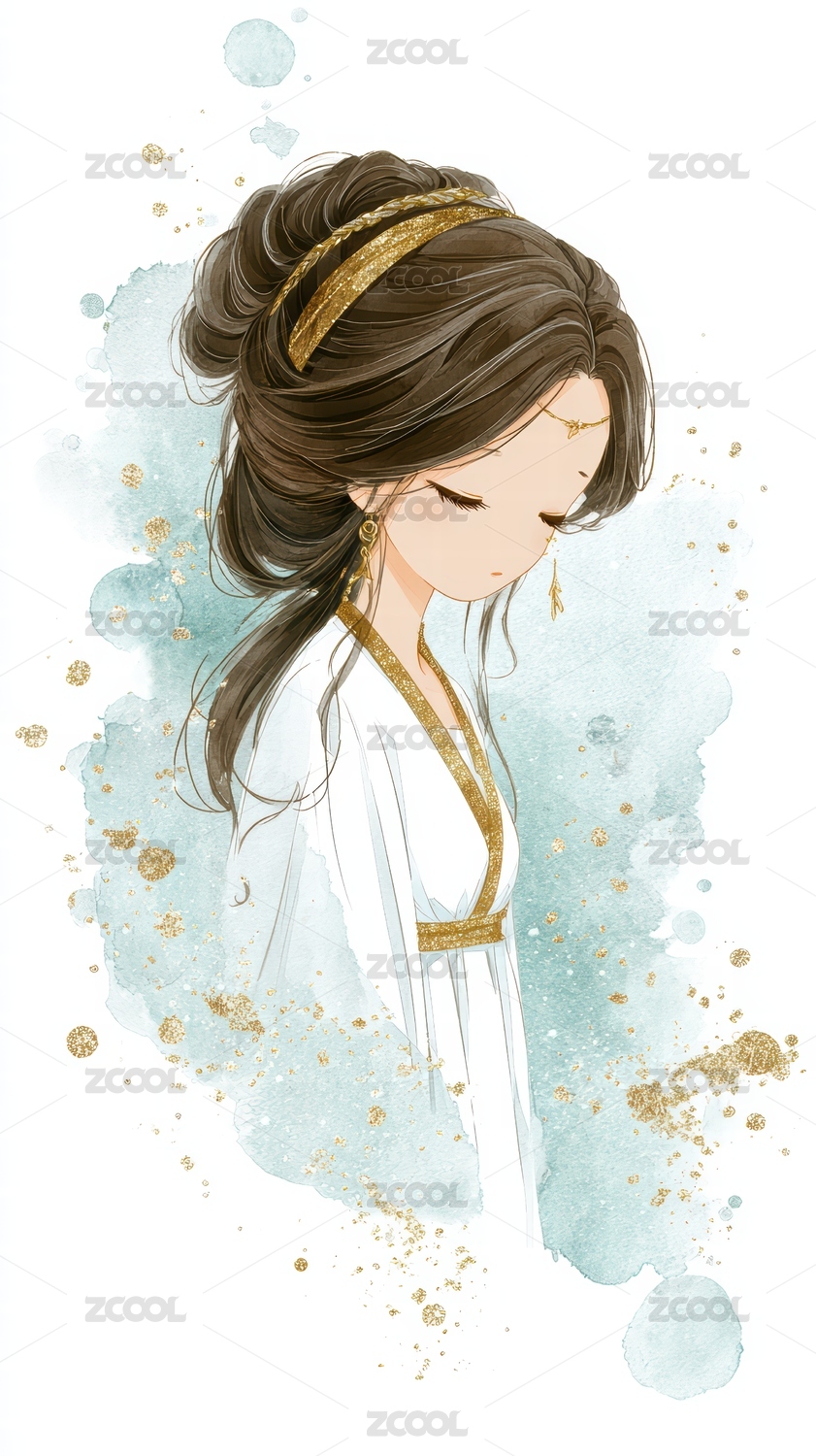 光影,飘带,古风,白色,女子,闭眼,青丝,发饰,耳环,衣裳